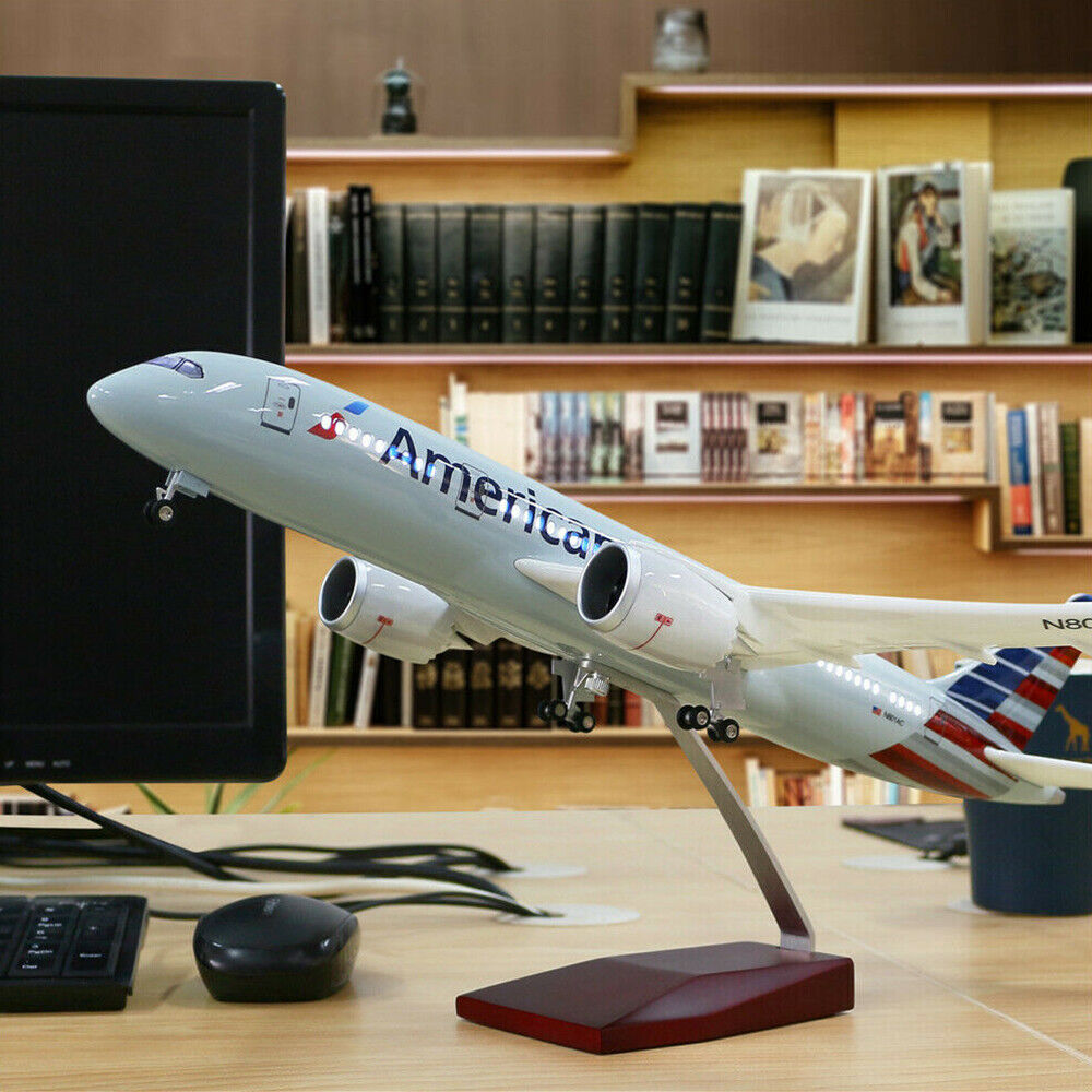 StoneSky 1:130 American Airlines Boeing 787 Airplane Model Ornament W/ LED Light Wheel