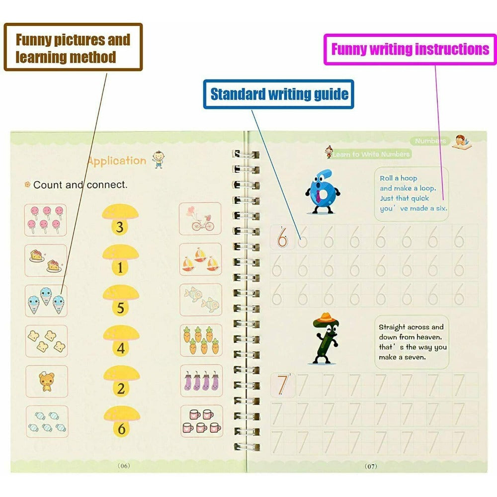 StoneSky 11/23Pc Magic Practice Copybook Number Book Set Writing Preschooler Pen Reusable