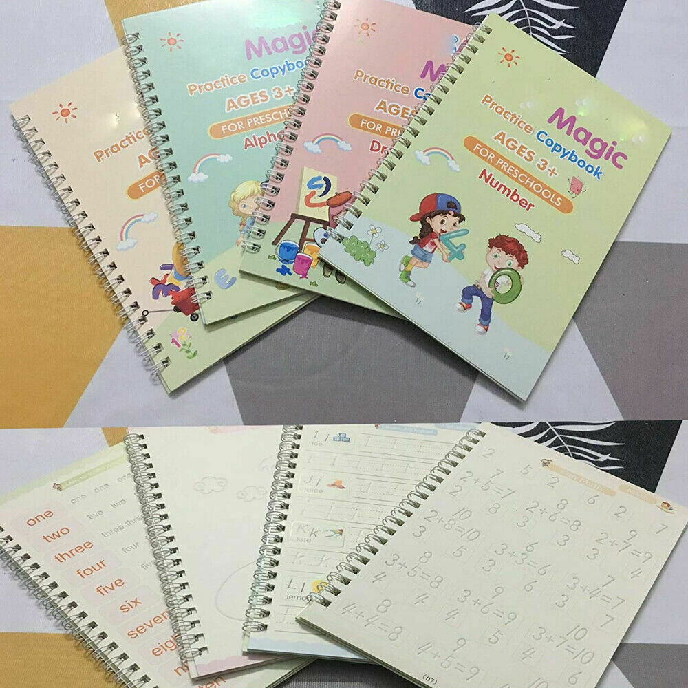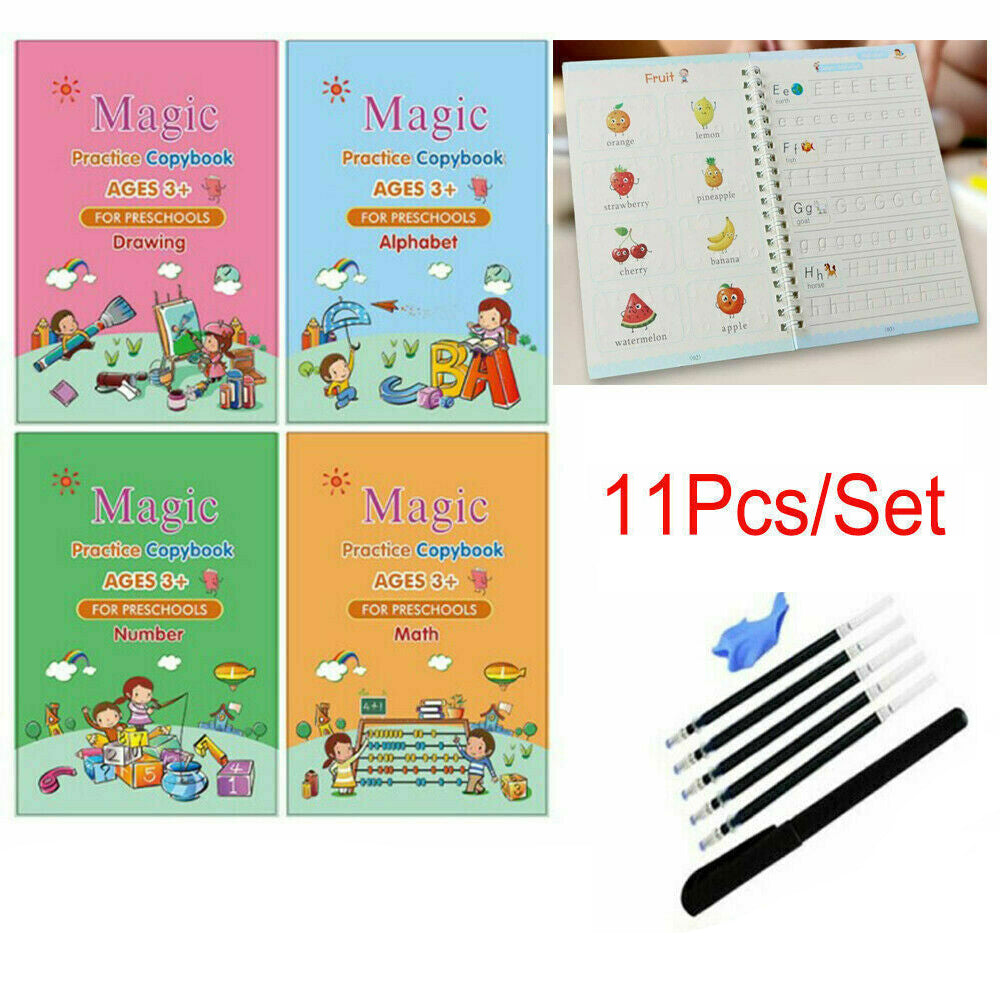 StoneSky 11Pcs Magic Practice Copybook Set Reusable English Calligraphy Number Book kids