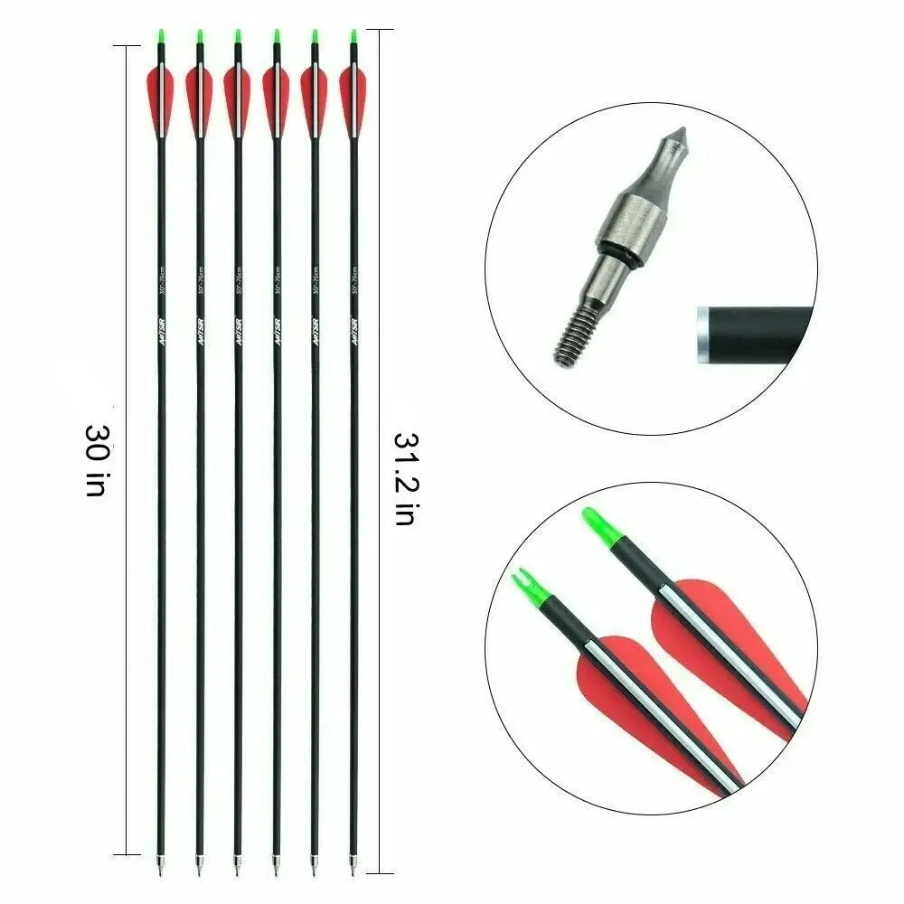 12 pcs Drop Shipping Carbon Arrows for Hunting, OD 7.8mm and Spine 500 with 30 inch Length