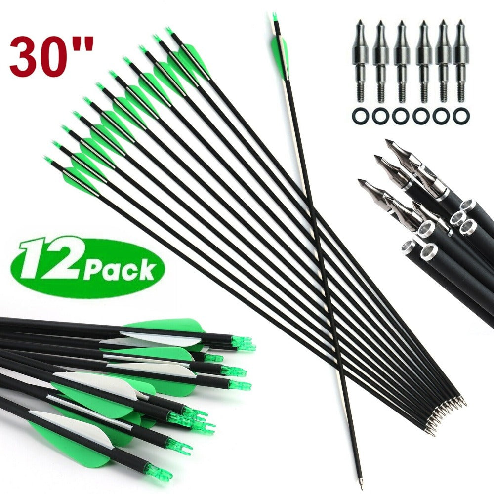 StoneSky 12Pack 30-inch Carbon Arrows SP500 Archery Hunting For Compound & Recurve Bow US