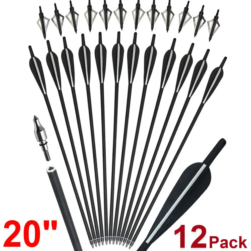 12Pcs 20'' Carbon Crossbow Bolts Archery Hunting w/ 12Pcs 100 Garin Arrowhead hunting bow