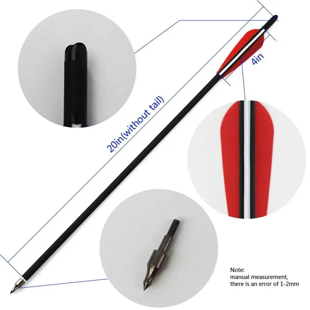 12Pcs 20-inch Carbon Crossbow Bolts Archery Hunting + 12Pcs 100 Garin Arrowhead Broadheads