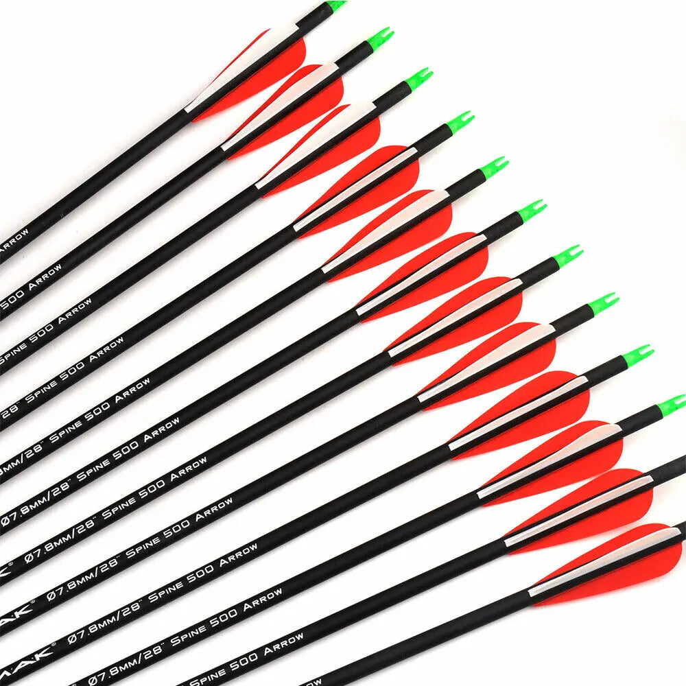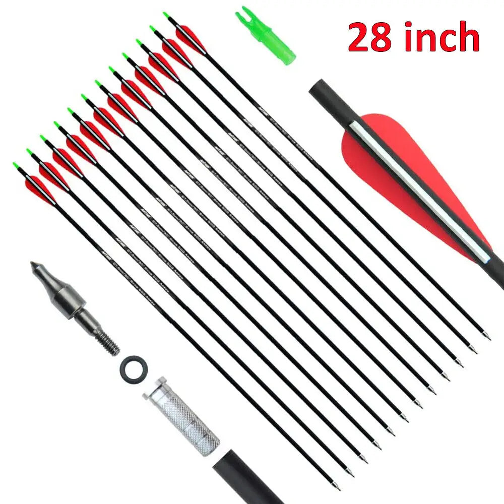 12Pcs 28" Carbon Arrows SP500 OD7.8mm Archery Hunting For Compound & Recurve Bow USA