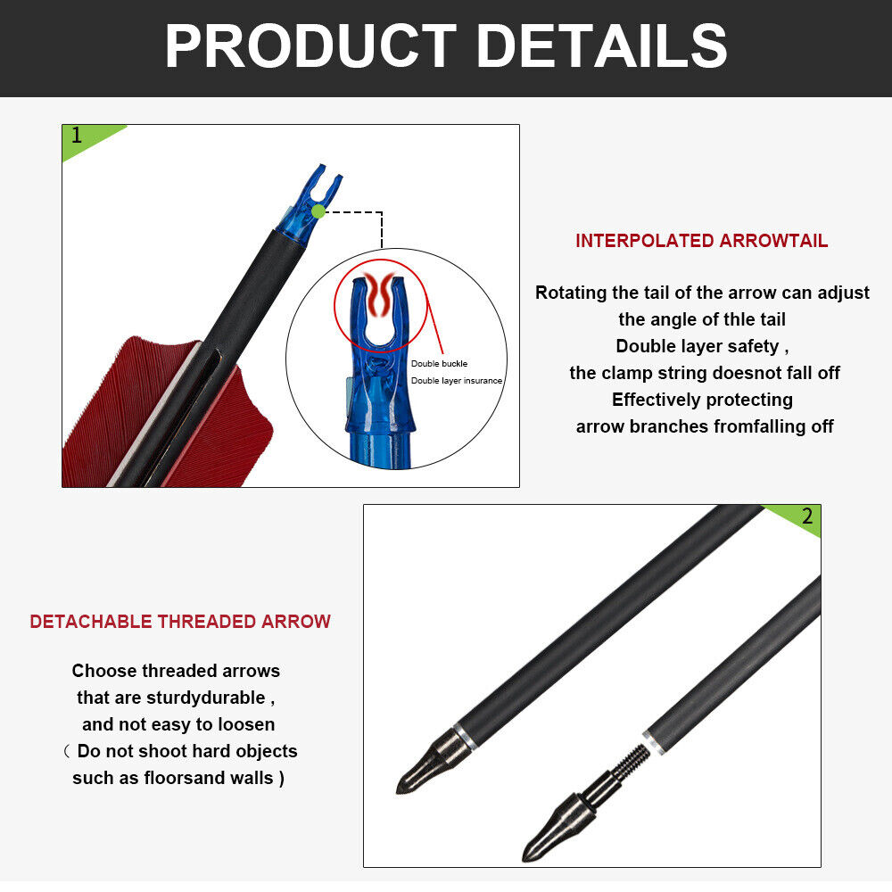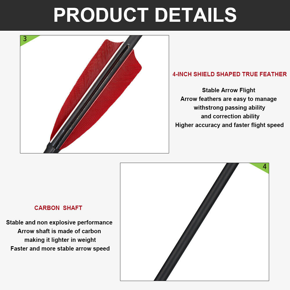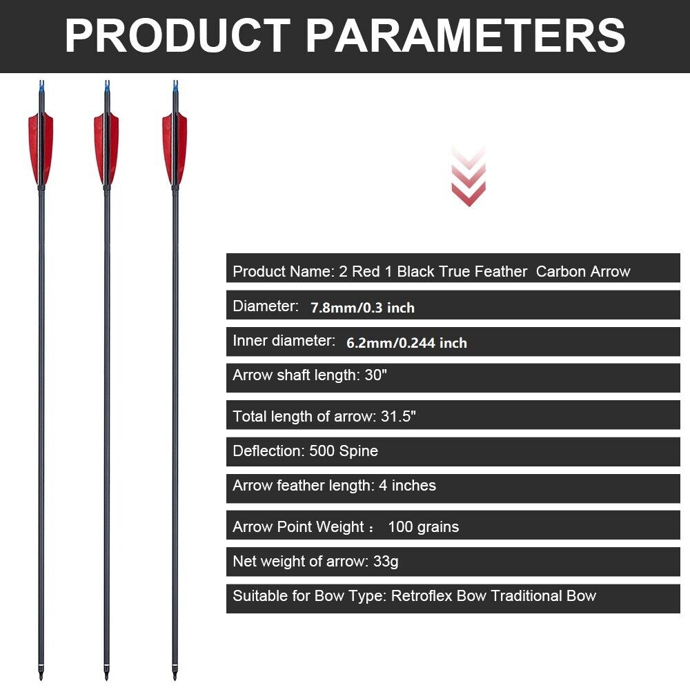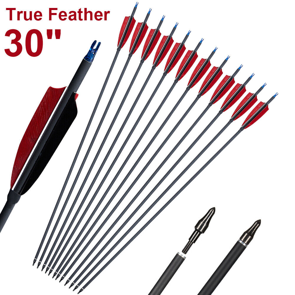 StoneSky 12Pcs 30" Carbon Shaft Arrows Spine 500 OD 7.6mm True Turkey Feathers Hunting