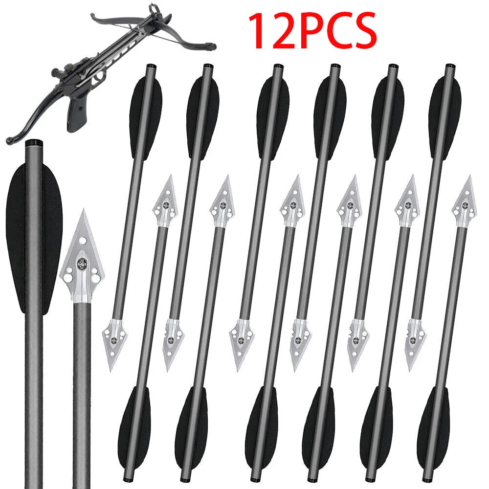 12Pcs 6.3" Aluminium Crossbow Bolts Broadheaded Arrows 50-80lb Hunting Crossbow with Broadhead Hunting