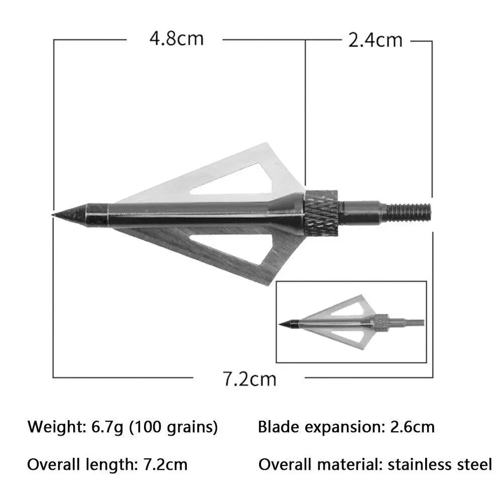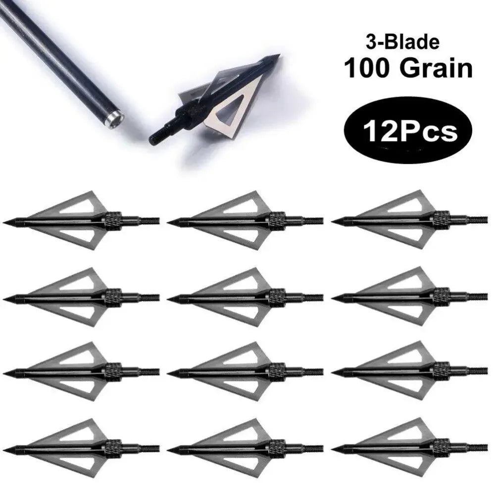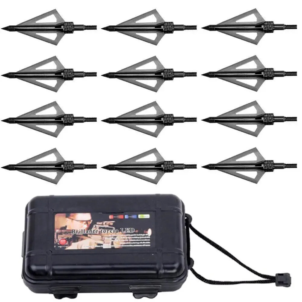12Pcs Broad Heads 3 Blade Arrowheads Arrows Hunting Archery 100 Grain W/ Box archery bow