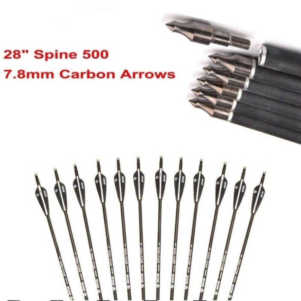 StoneSky 12x 28 inch Carbon Arrows OD 7.8mm Spine 500 Archery Target Practice For Youth