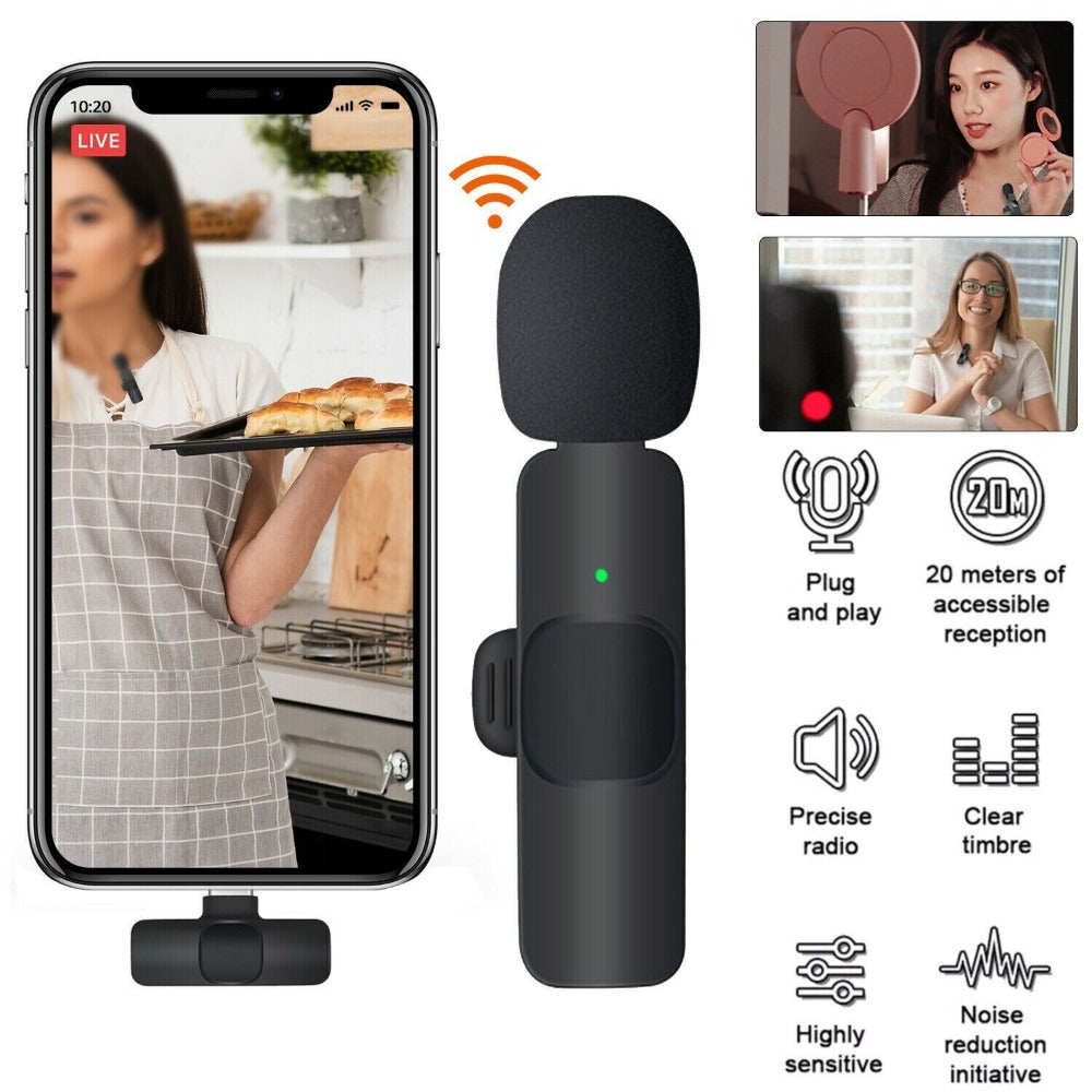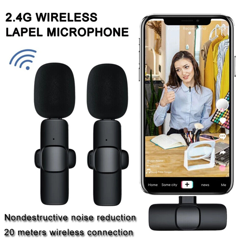 StoneSky 2 IN 1 Lavalier Wireless Microphone Audio Video Recording Mini Mic For iphone