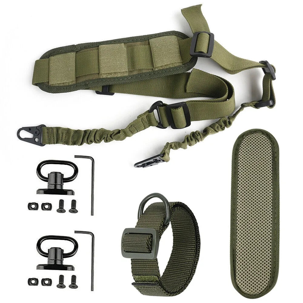2 Point Sling QD Swivel Rifle Tactical Gun D Ring Sling Strap + 2Pcs MLOK Swivel