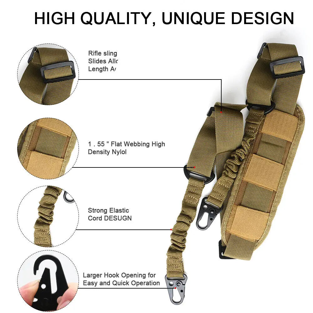 STONESKY 2 Point Sling Strap With Shoulder Pad + D Ring Loop + 2Pcs QD Sling Mount Swivels