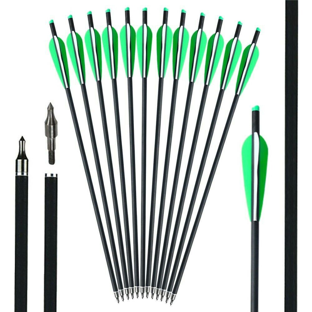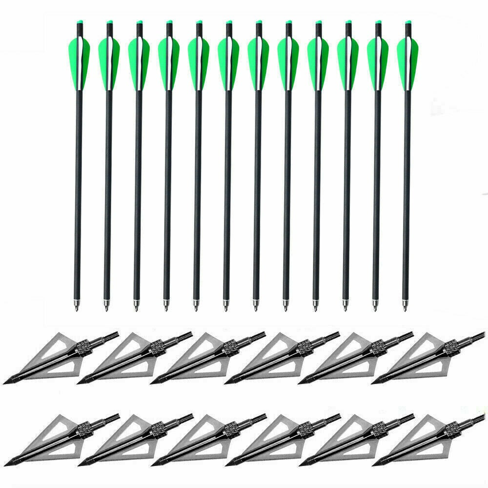 StoneSky 20 inch Crossbow Bolts Carbon Arrows Target + 12x 100 grain Broadheads +Quiver