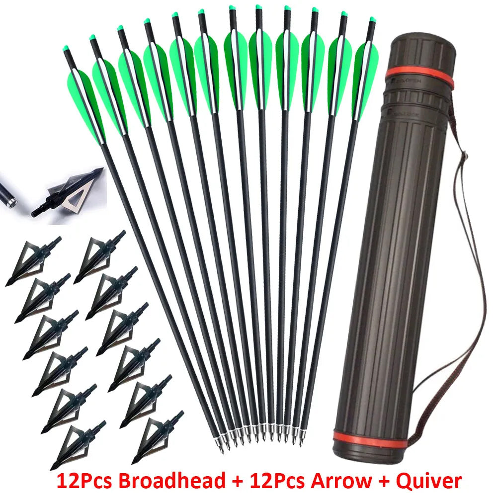 12 pieces of carbon bolts +12 pieces broadheads+1Pcs Tube Quiver