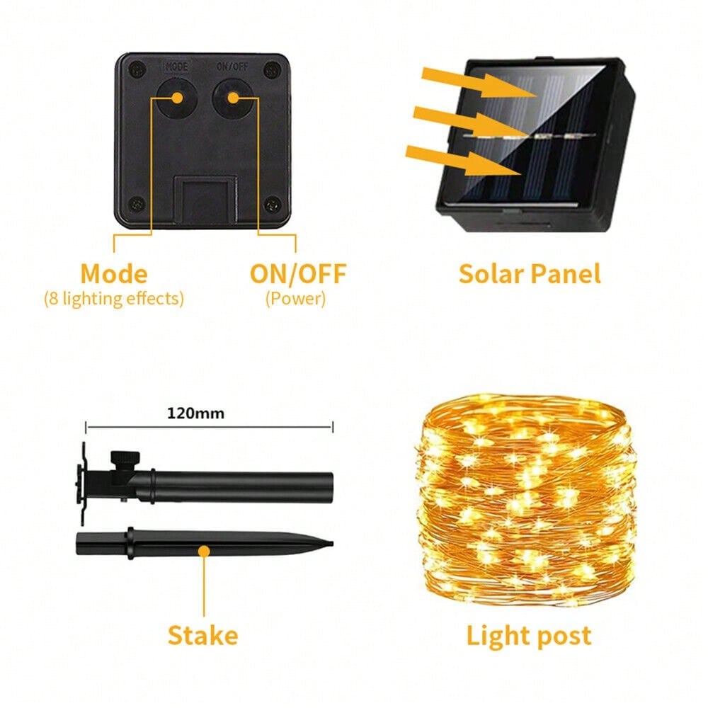 STONESKY 200 LED Solar String Cooper Wire Fairy Lights 8 Modes Outdoor Yard Patio Decor