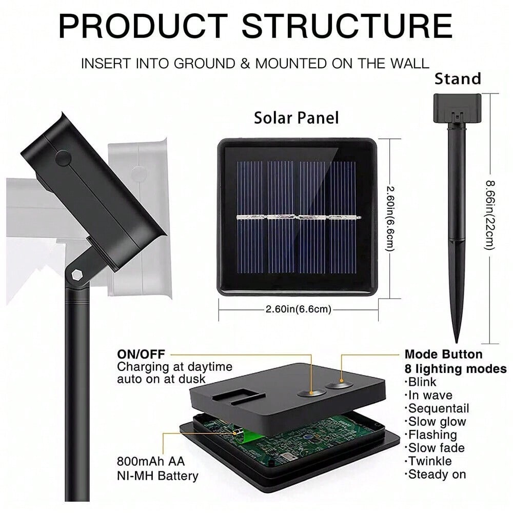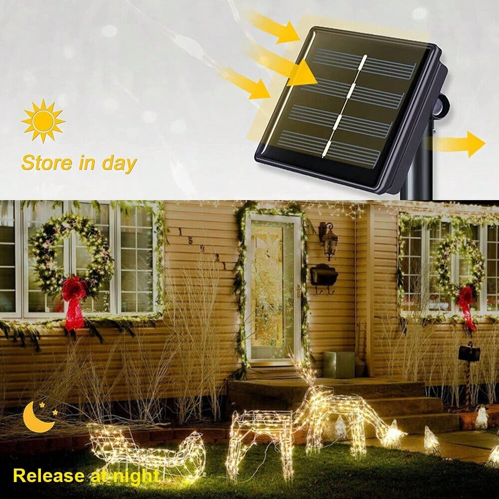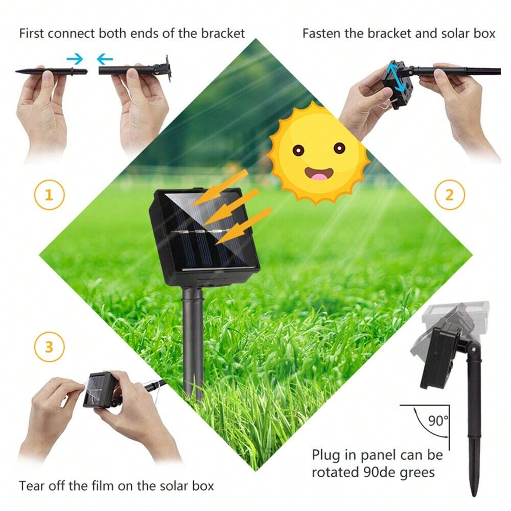 Press the ON/OFF switch, the light string will work, automatically charge during the day (the light is off), and automatically light up at night.