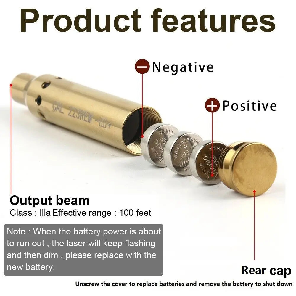 【Higher Accuracy】The laser bore sight is designed to provides a precise reference to zero-in your optic or iron sights so as to save your time and money, sighting range of the CAL.223REM bore sight is 30 to 300 yards.