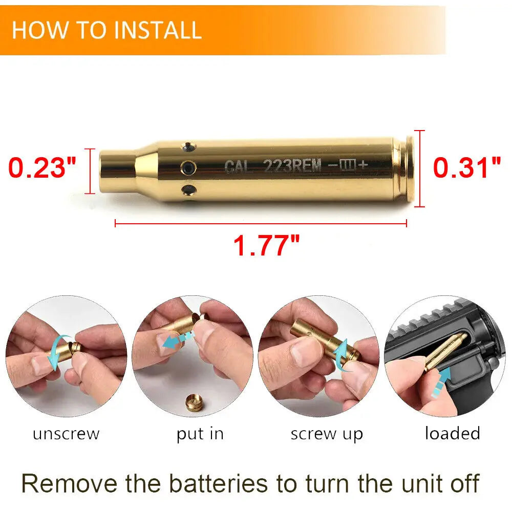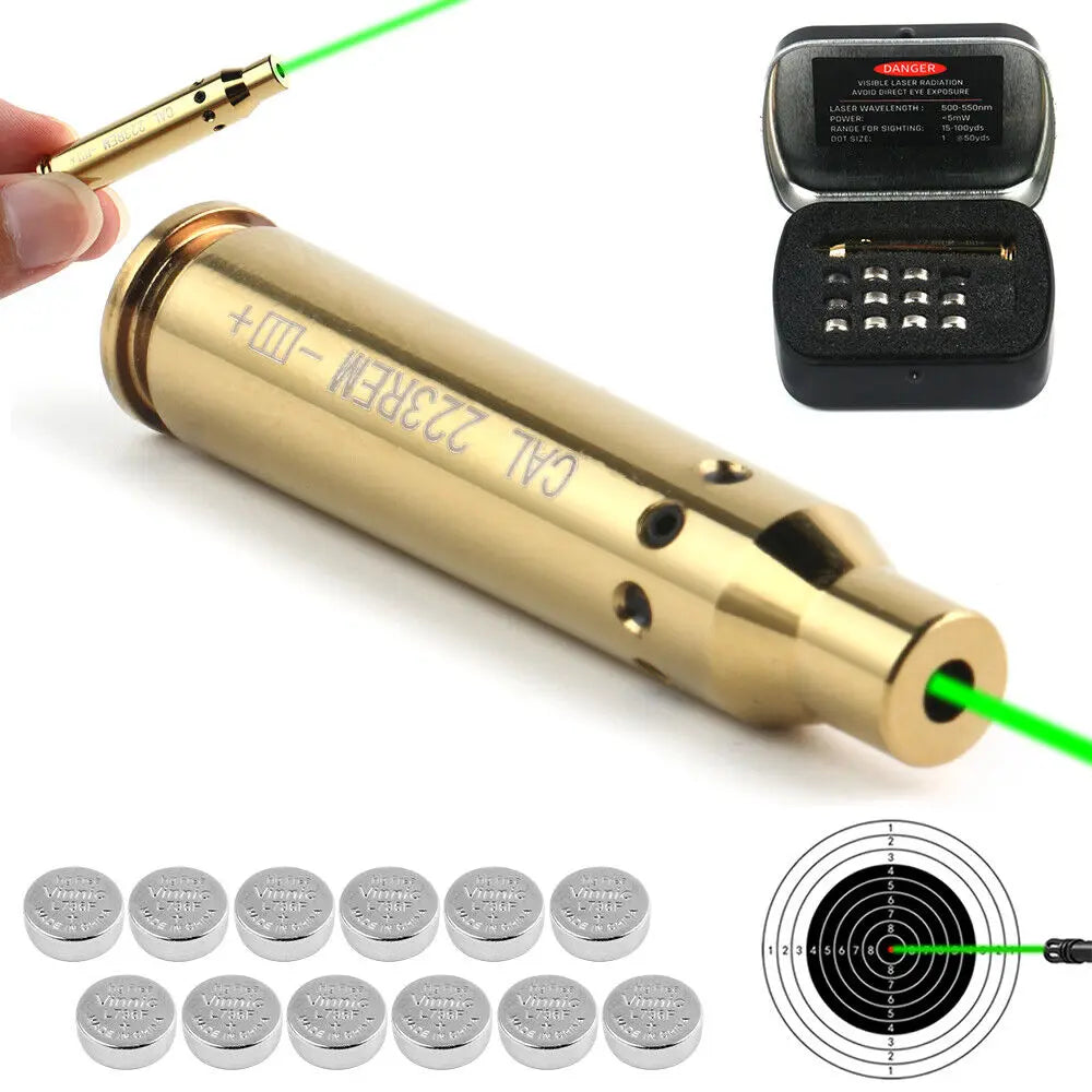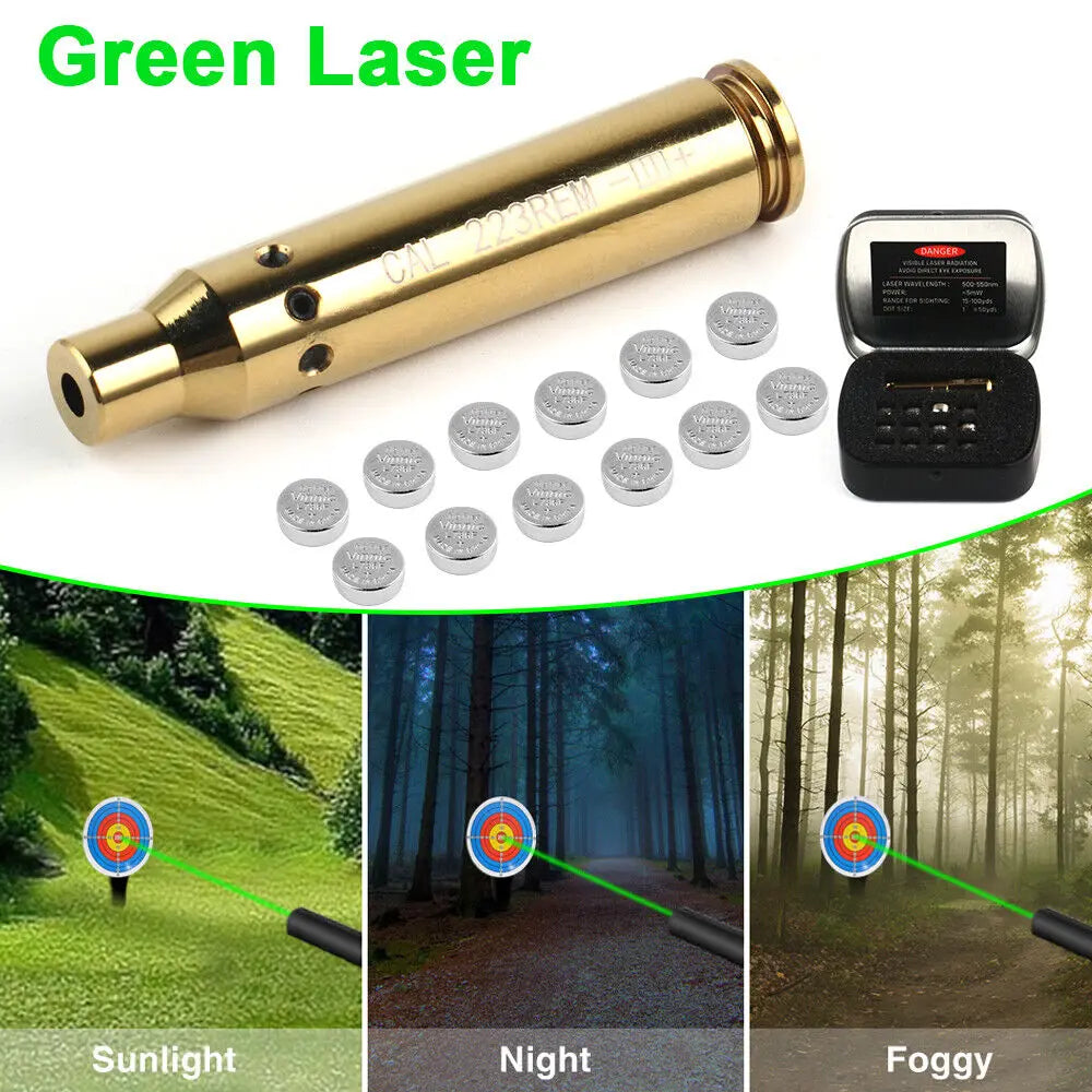 .223REM Green Laser Bore Sight Cartridge Shooting Boresight w/ 12Pcs Battery holographic sight