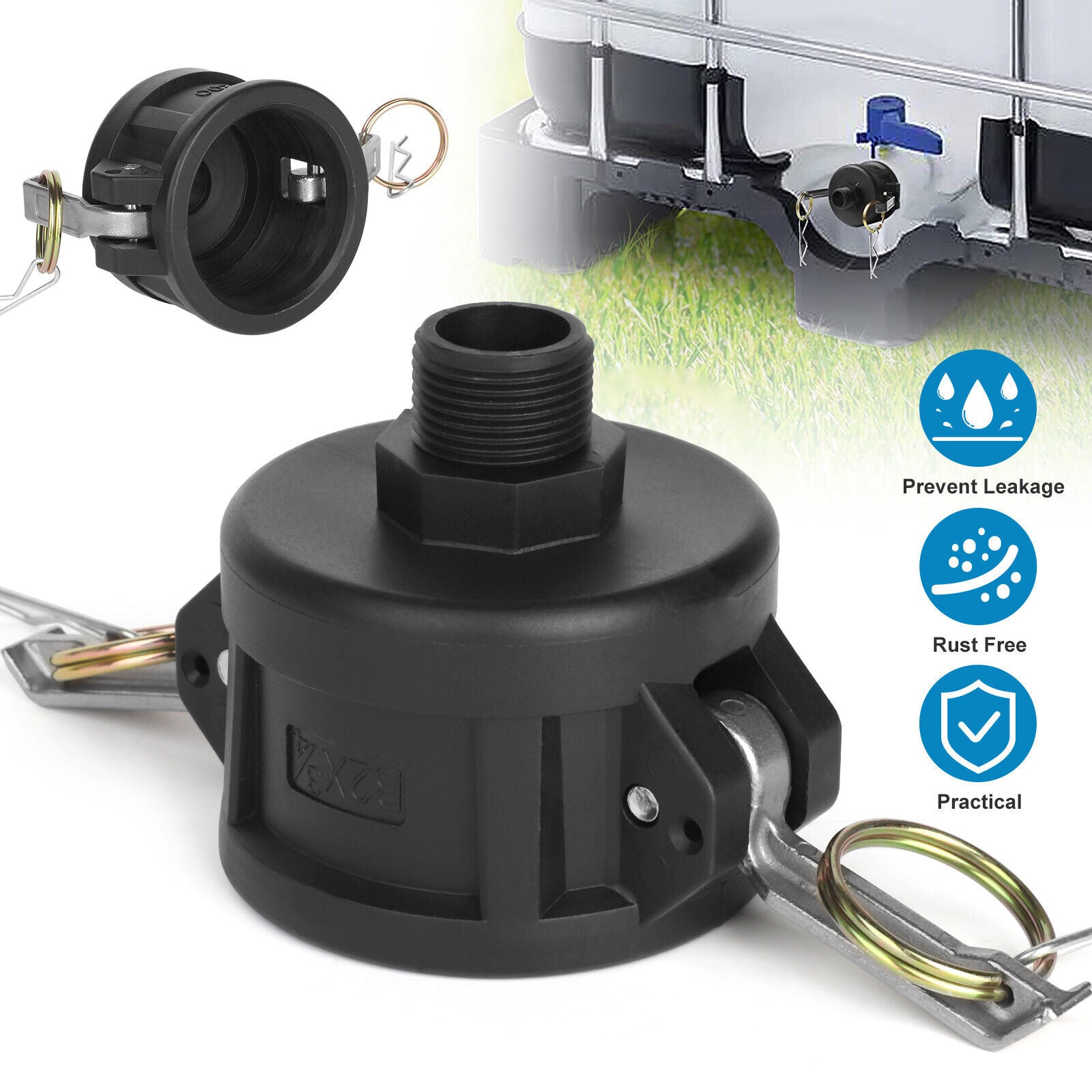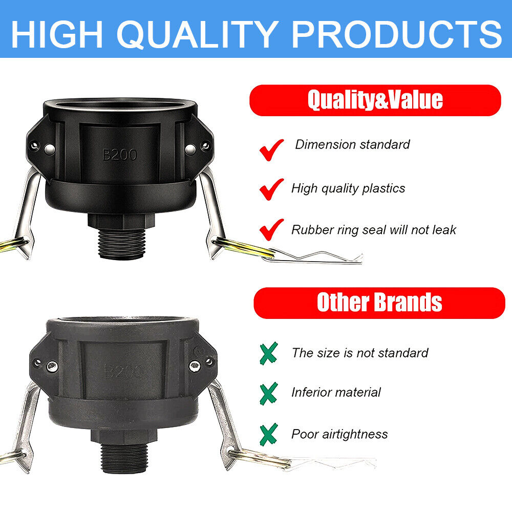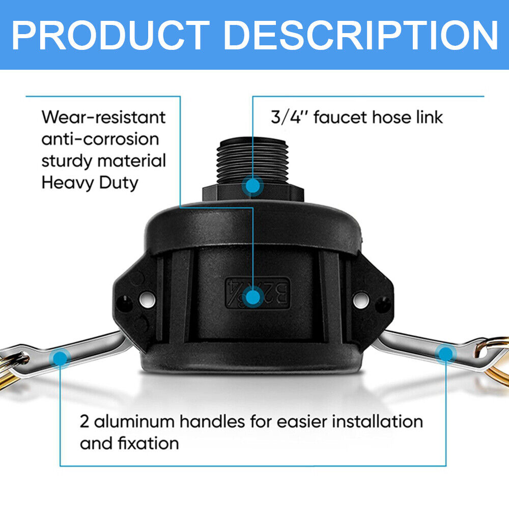 StoneSky 275 330 Gallon IBC Tote Water Tank Drain Adapter 2"Cam Lock for Garden Hose 3/4"
