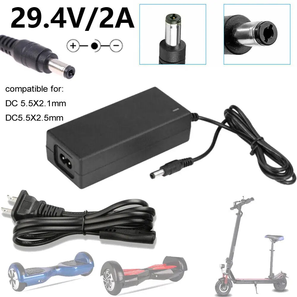 29.4V 2A Li-ion Battery Charger Adapter For 24V Hoverboard Electric Bike Scooter