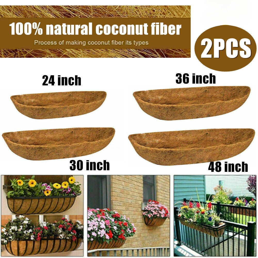 StoneSky 2PCS 24"/30"/36"/48" Coco Liner Trough Half Moon Shaped Planter Liner For Window