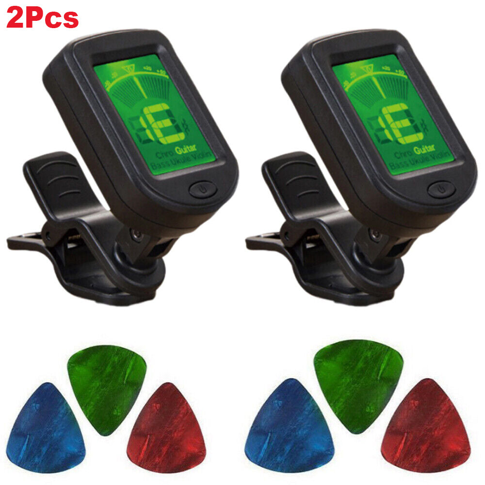 StoneSky 2Pcs Clip-On LCD Digital Acoustic Tuner for Guitar Bass Violin Ukulele Chromatic