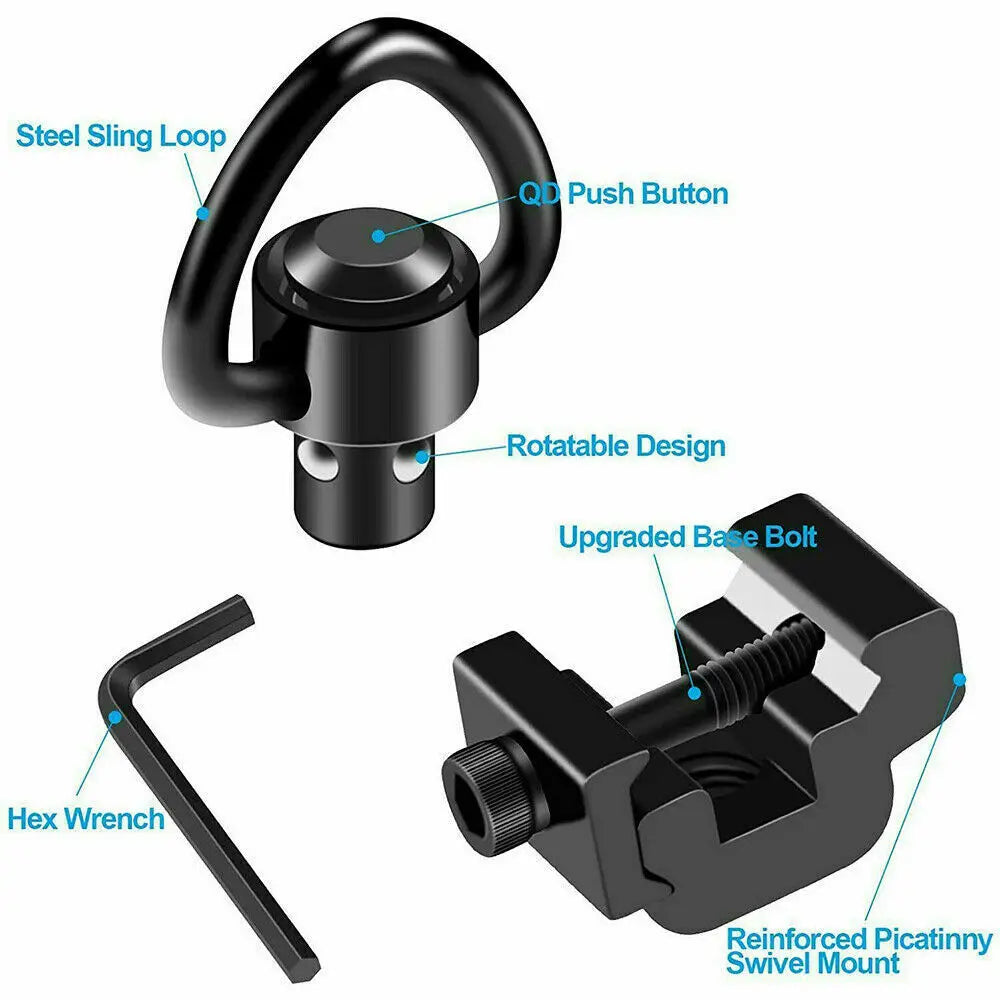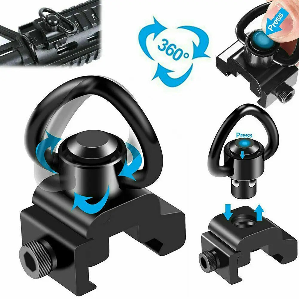 2pcs Quick Release Detach QD Sling Swivel Attachment w/20mm Picatinny Rail Mount