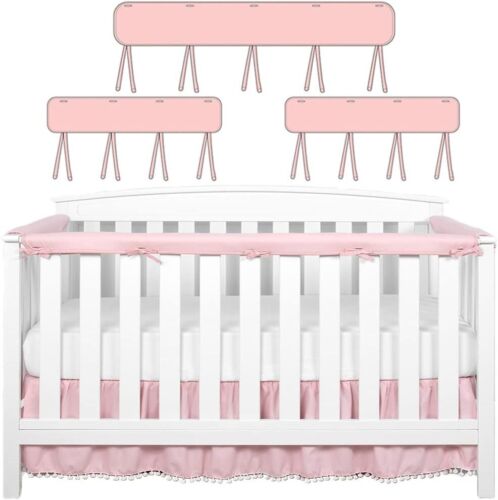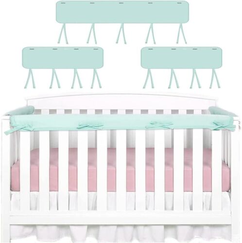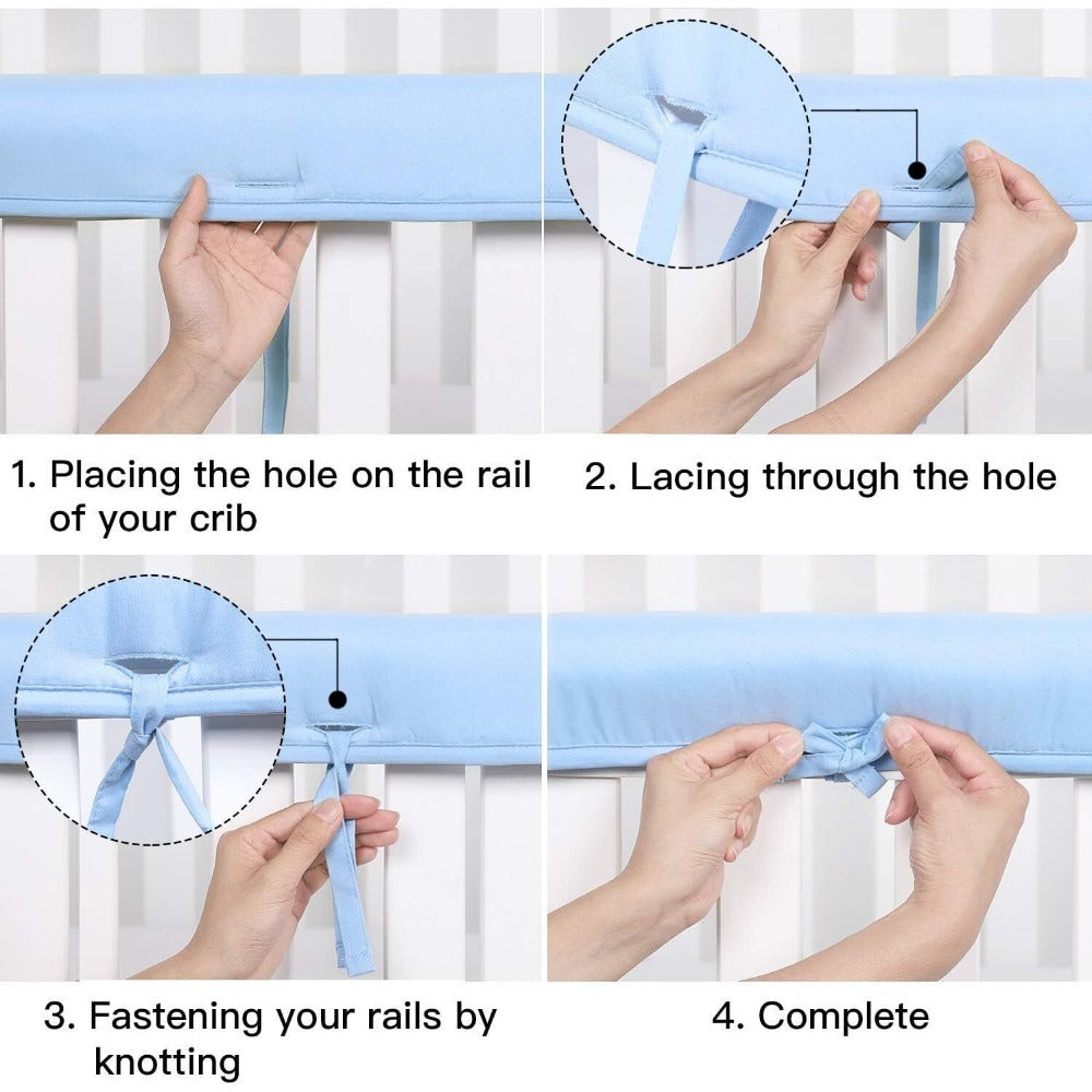 - 【Safety Protect Teeth】Resistant to biting. Our crib teething guard rail covers help protect teeth. Each piece is designed with solid strips and tied on, which is easy to fix firmly. The crib rail cover ensures your baby's safety (soft padding inside) and decorates the crib nicely.