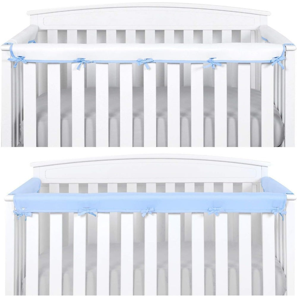 - 【Soft Microfiber】The baby crib rail covers have thick fabric padding, protecting your teething baby from chewing the crib and beating its head on the rails. Every baby takes his first independent steps in the crib.