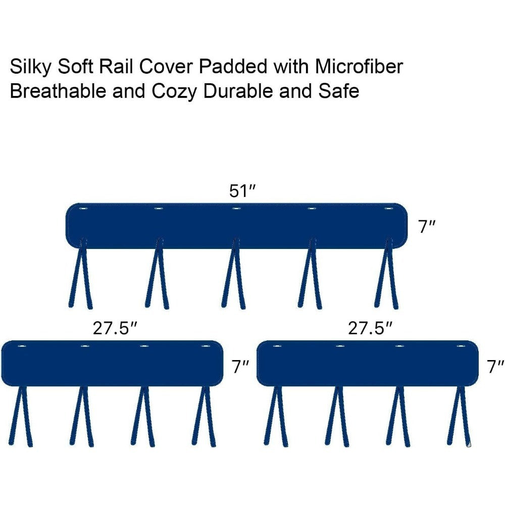 - 【Fits Full-Size Cribs】Our crib rail cover set includes 4 pieces, 2 long piece ( length is 51 inches, width is 7 inches), and 2 short pieces (length is 27.5 inches, width is 7 inches), which is perfectly suitable for a standard-sized crib.