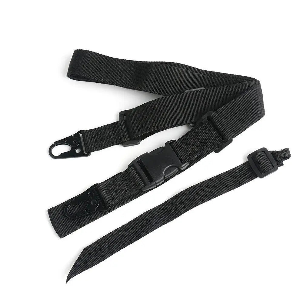 The 3 point adjustable sling system is an optimized, dedicated 3-point sling that serves as a point of control and carry. With heavy-duty and weather-proof nylon webbing, the sling can be adaptable to a variety of uses, missions, and situation. Can be easily be adjusted to fit most users and use of its secured adjusters. The 3 point system allows you to carry your weapon for the most in freedom of movement without being hindered by any unnecessary straps. Attaches onto your gun's sling point with a easy to manipulate metal hook this is an excellent, tough, and streamlined piece of gear to add to your load-out whatever it maybe.