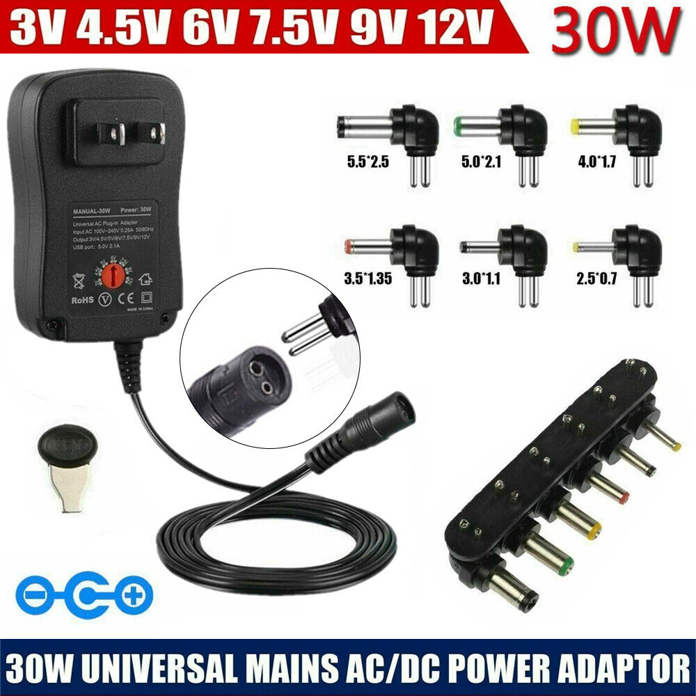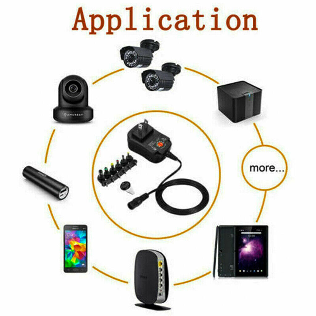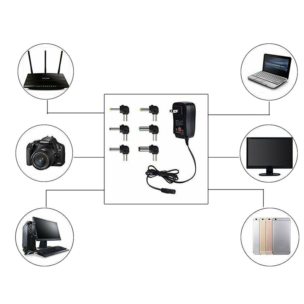 ✅ All-in-one Adapter - This 30w replacement ac adapter comes with 6 interchangeable tips, which makes it fits 95% of AC/DC home appliances, Such as 3V to 12V Household Electronics, Tablet PC, Scales, Routers, Speakers, LED Strip Lights, CCTV camera system, USB Charging Camera, and so on.