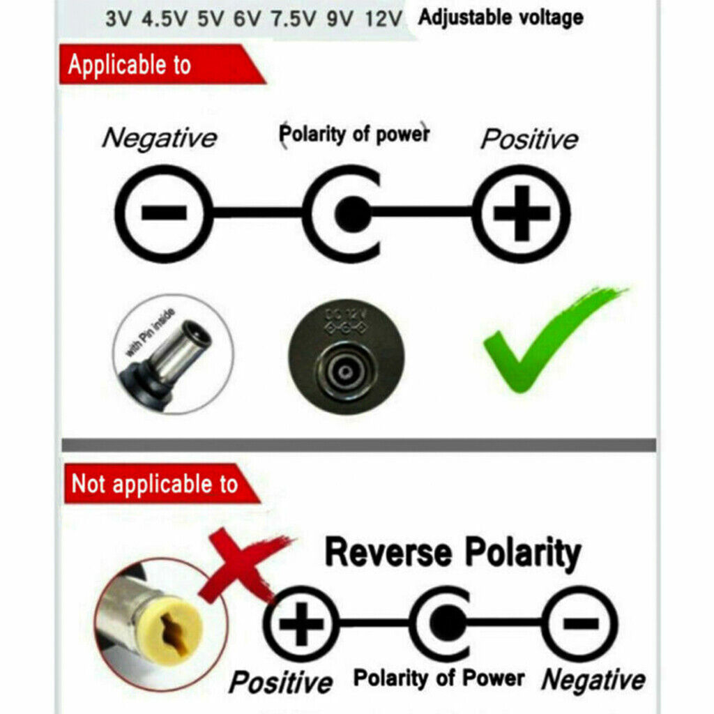 ✅ Multifunctional 30W Adapter - Variable voltage is easy to select, you can converts to different voltage with ease using the provided key. DC Power Cable Connector Plug, easy to connect and practical to use. Supporting DC 12V-2A or 12V-1.5A appliances. [Note: DC Plug Polarity: inner Positive(+), outer Negative(-), Polarity is Not reversible.]