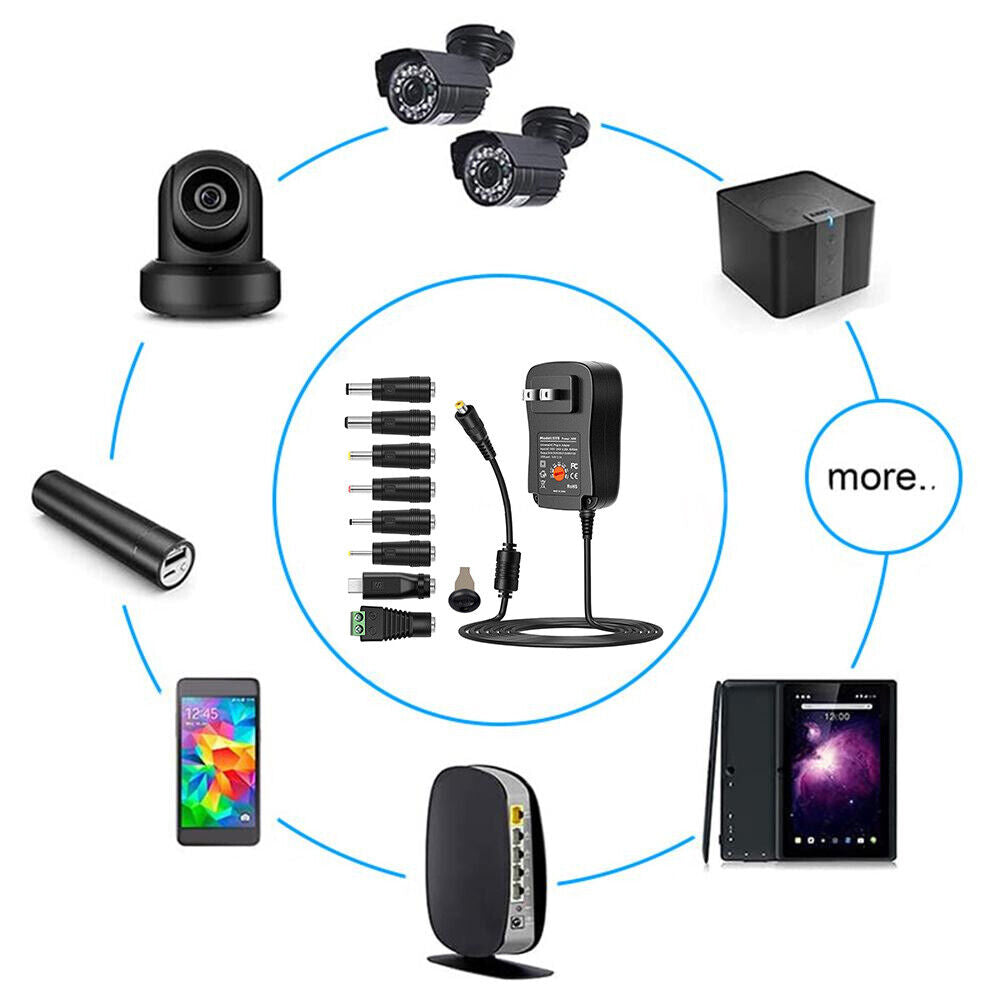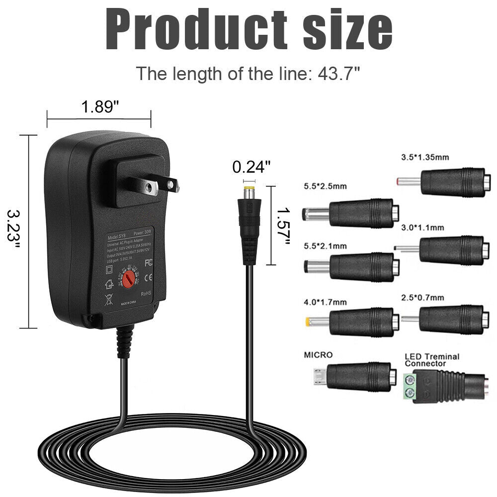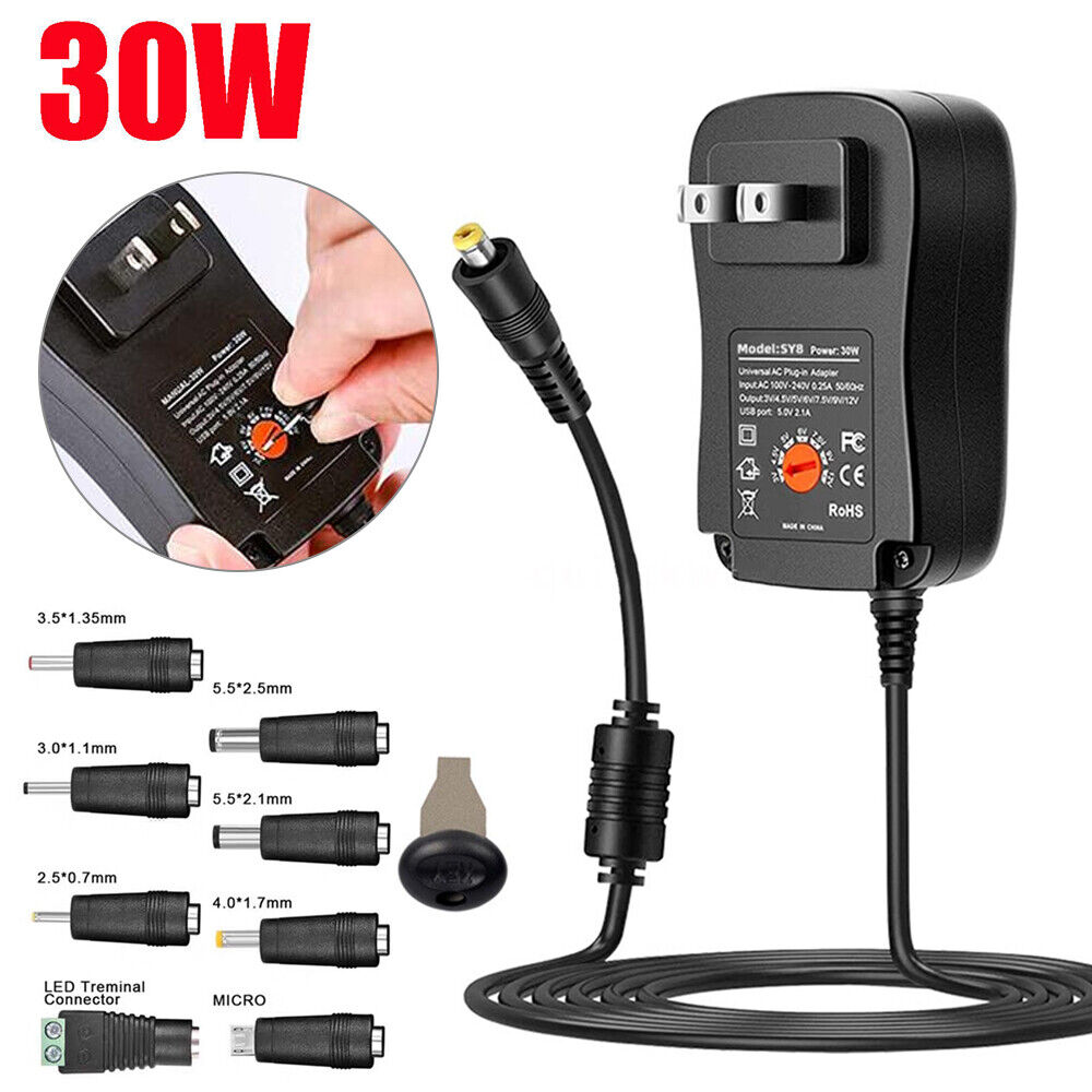 30W Universal Power Adapter AC DC 3V-12V Multi Voltage Charger Converter 8 Tips