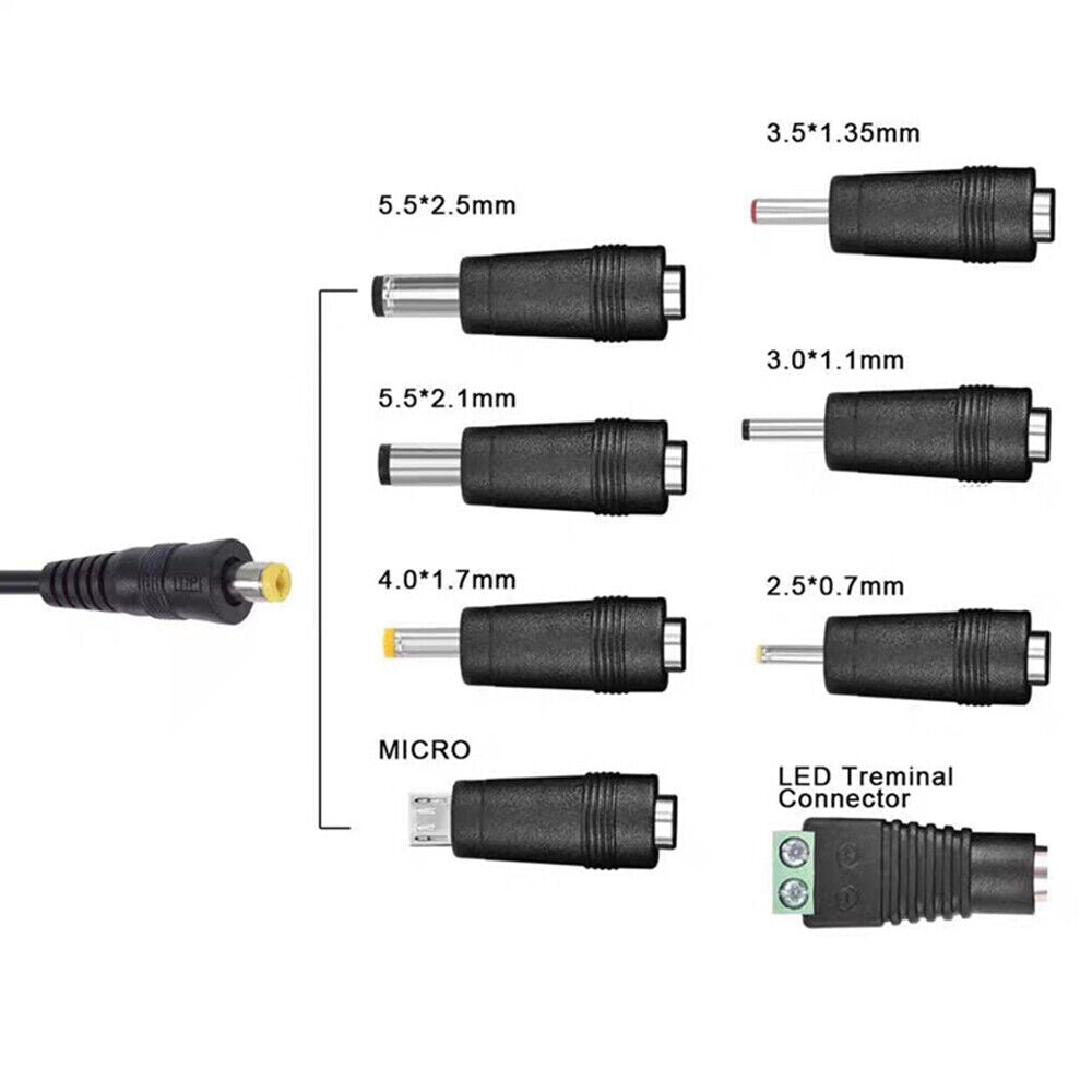 DC Tips Spec.: 5.5*2.5mm, 5.5*2.1mm, 4.0*1.7mm, 3.5*1.35mm, 3.0*1.1mm, 2.5*0.7mm, Micro USB, LED terminal connector