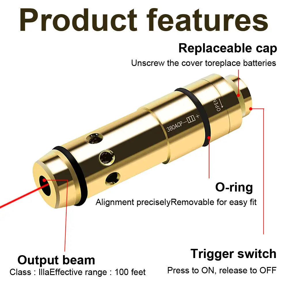【Performance】Our Tactical Training Laser Cartridge doesn't like the bore sight keeps lighting up, Bright red Class 3A (<5mW Operates at 650nm) laser flashes when Activates on fall of hammer or striker.Rubber snap cap at the rear of the cartridge protects the firearm under "Dry Fire"