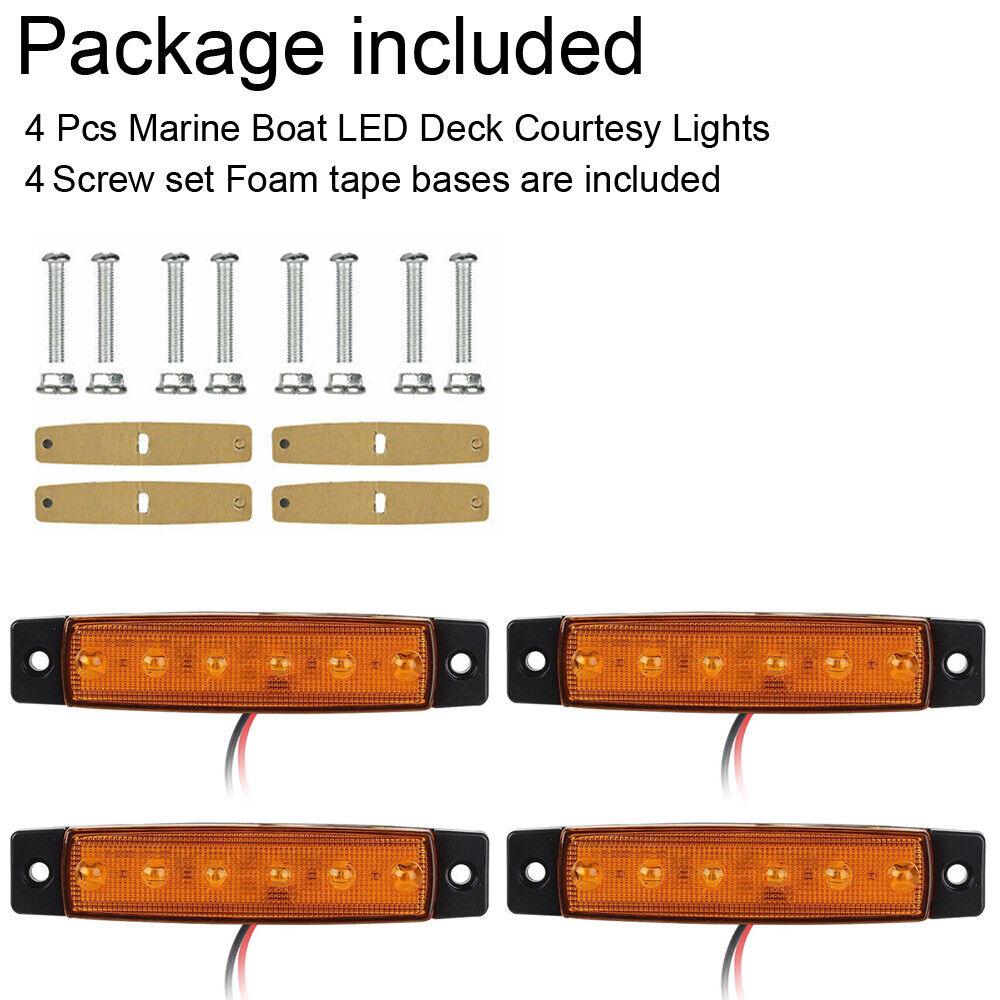 StoneSky 4Pcs Yellow LED Marine Boat Cabin Lights Courtesy Light Deck Stern Transom Lamp