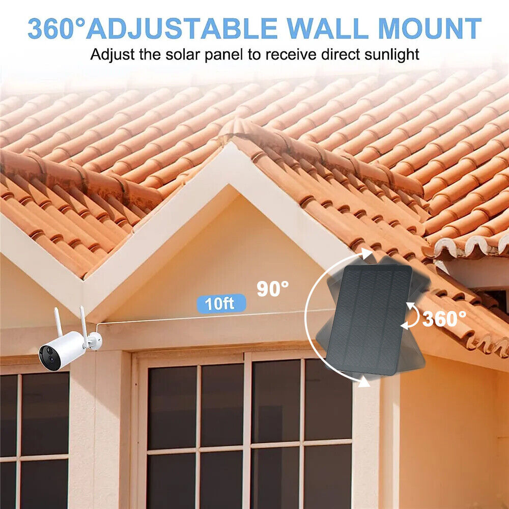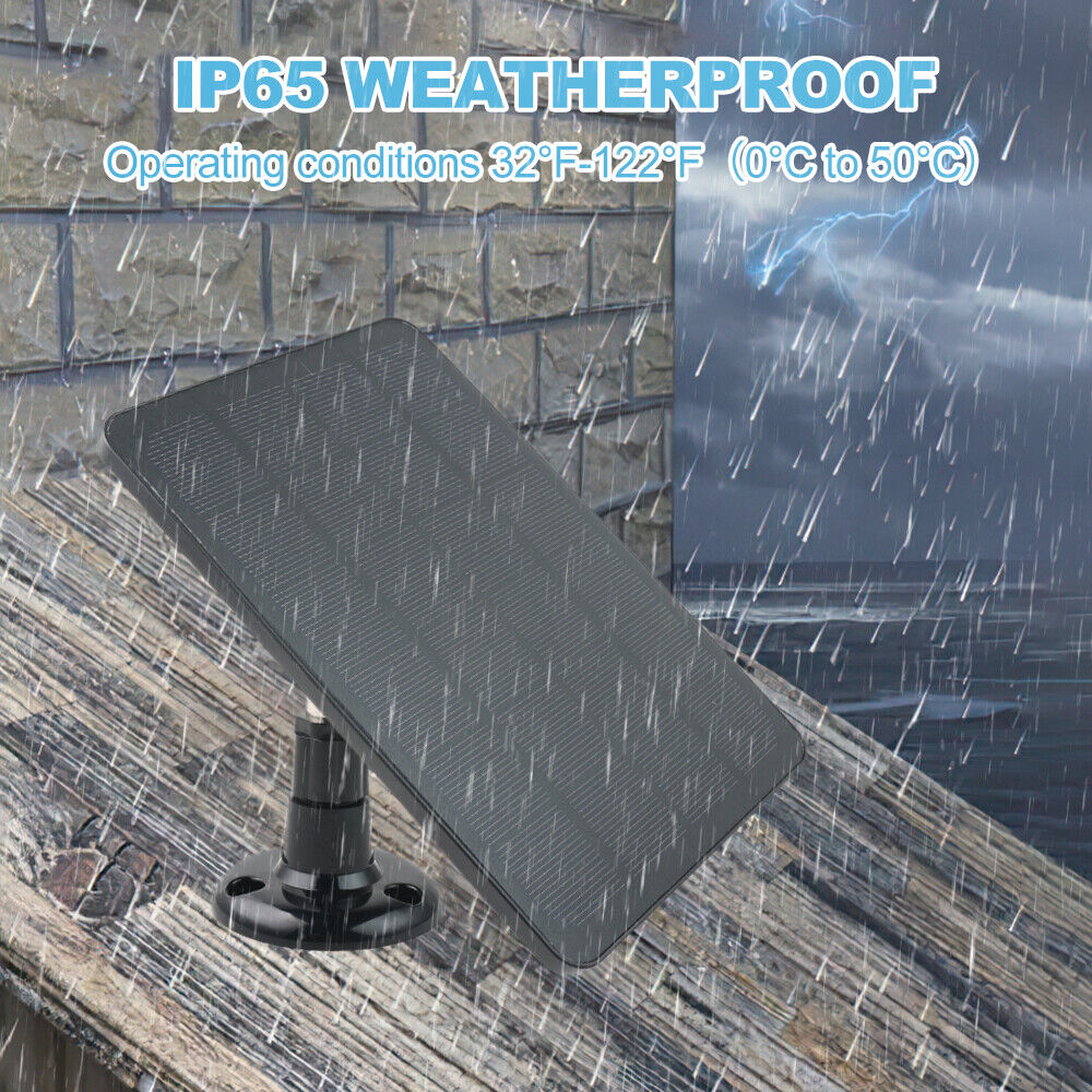 【High-efficiency with 4W Power Output】solar panel's surface is made of monocrystalline silicon material ,This 5V solar panel offers 4W(Max) power output which have higher conversion efficiency and power output than others. It even can continuously charge your security camera during partial cloudy days