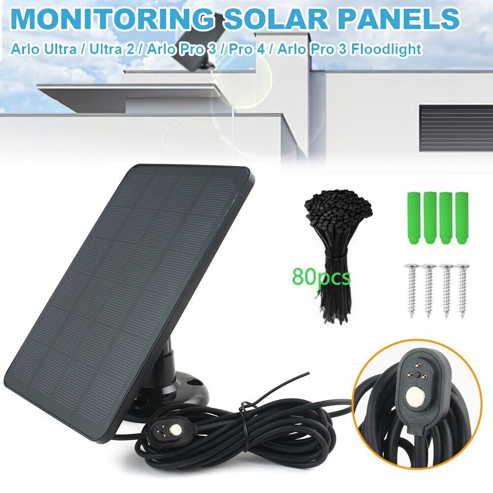 【Continuous Solar Power for Arlo Cameras】Arlo Solar Panel with magnetic charging connector (Not USB connector) is specially designed for Arlo Ultra,Arlo Ultra 2,Arlo Pro 3,Arlo Pro 4,Arlo Pro 4 XL,Arlo Pro 5S 2K Spotlight camera. support your Arlo cameras to operate day and night.