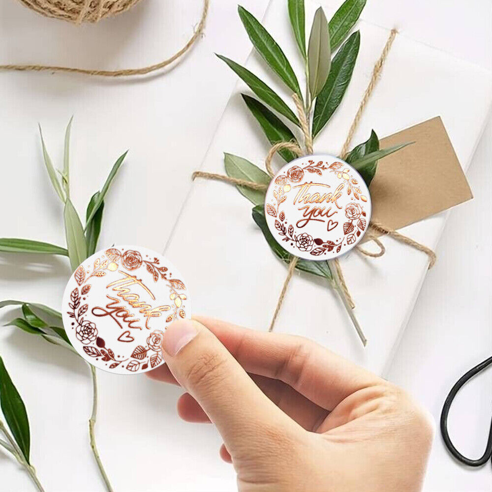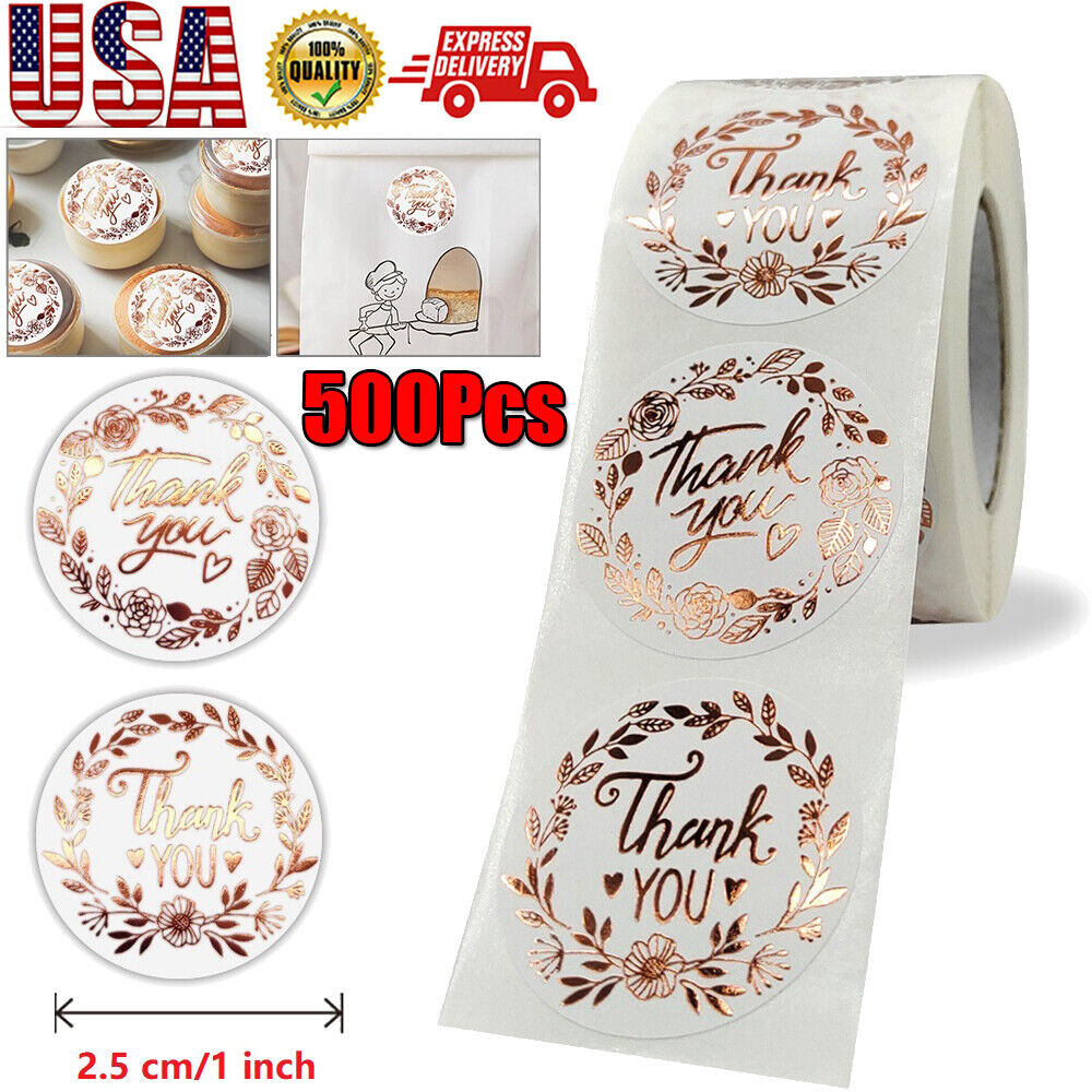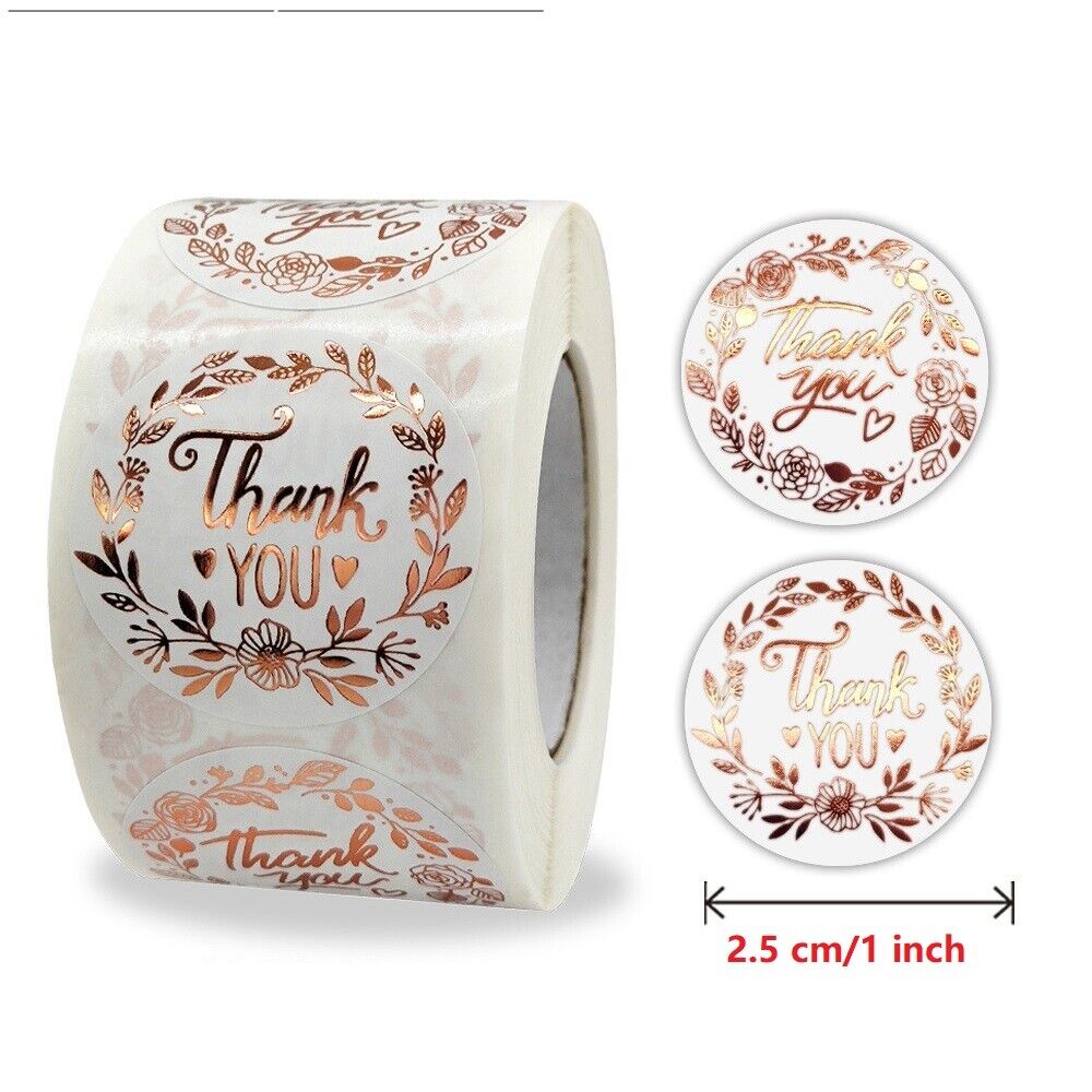 StoneSky 500pcs 1inchs Thank You Stickers Rose Gold Small Business Envelope Sticker