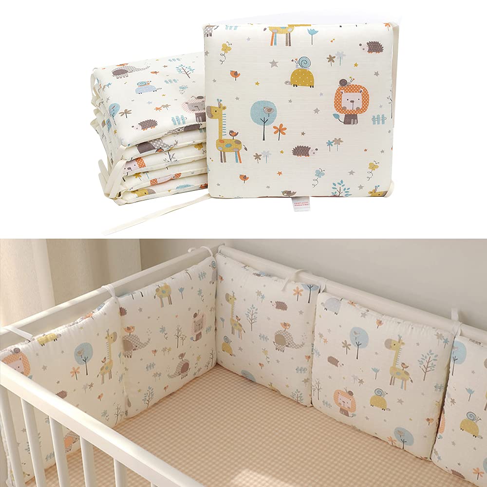 - 【Package Includes】 The package includes 6 pieces of crib liners. It can only surround 2 sides of the normal cirb.In fact, for the convenience of transportation, we made a compressed package.So if you want to surround more sides of your crib, you have to buy at least 2 package. It seems that this product is too thin. After the customer receives it, expose it to the sun and pat it lightly. The thickness can be restored. Thank you very much for your patience and understanding.