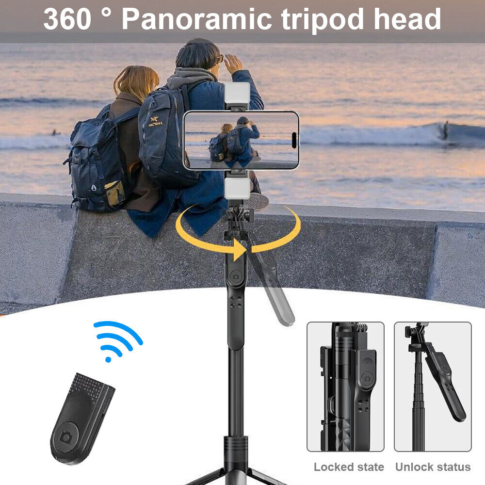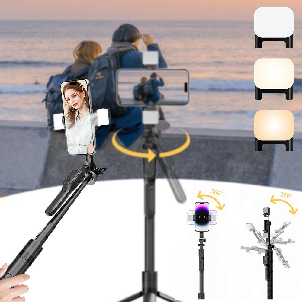 StoneSky 68" Wireless Remote Selfie Stick Tripod Cell Phone Camera Stand With Fill Lights