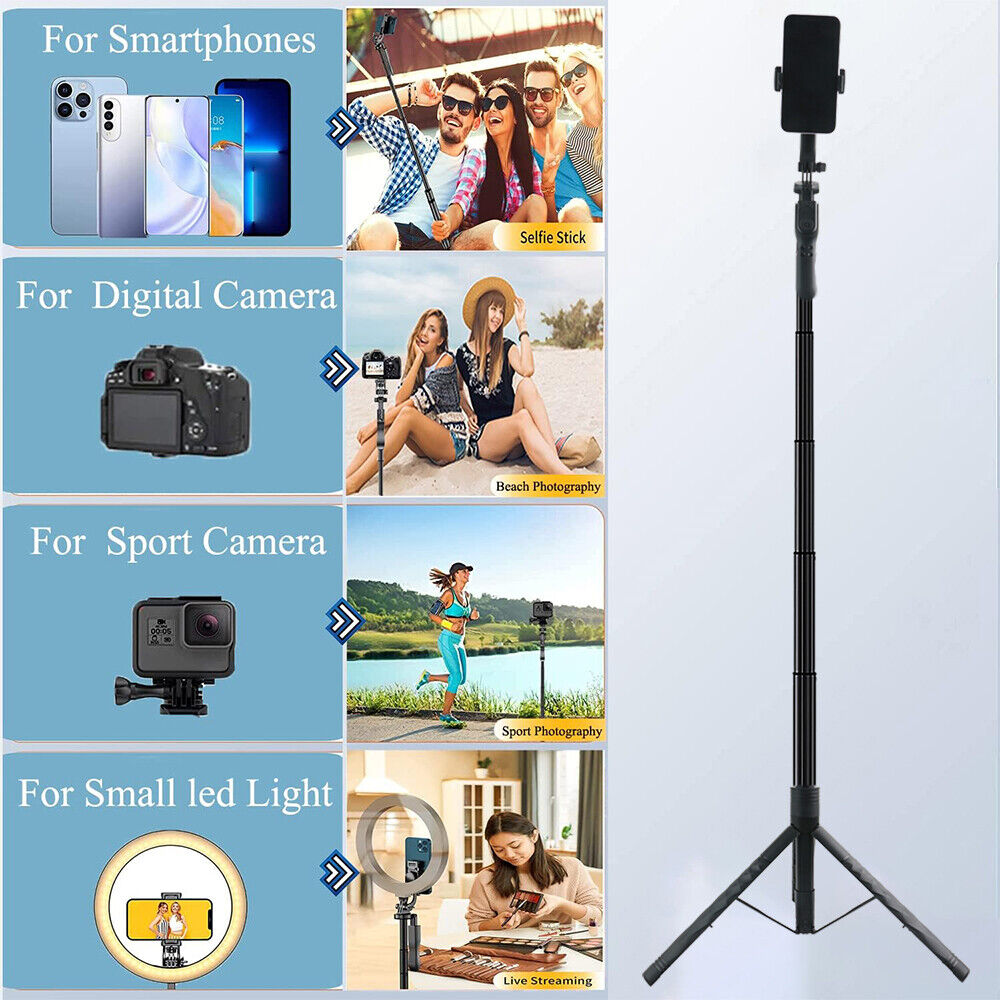 【Super Safe】Height Adjustable Extended from 32.5cm/12.8 inches to 175cm/ 68.9 inches, the height can be flexibly adjusted to fully meet the needs of various shooting heights.The tripod base is designed with an umbrella-shaped skeleton structure, which strengthens the load-bearing capacity and anti-slip ability. which the non-slip rubber feet can provide a firm grip and strong friction to make the tripod more stable, anti-twist and anti-shake.