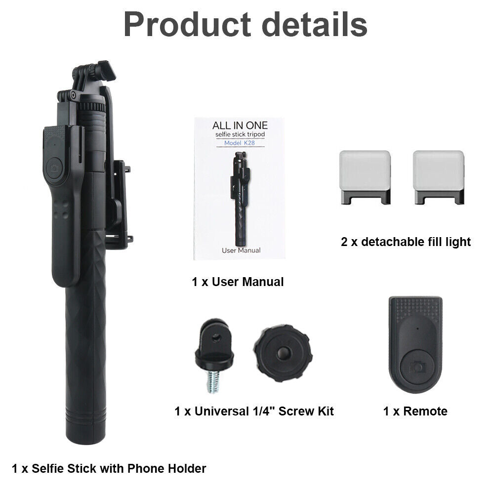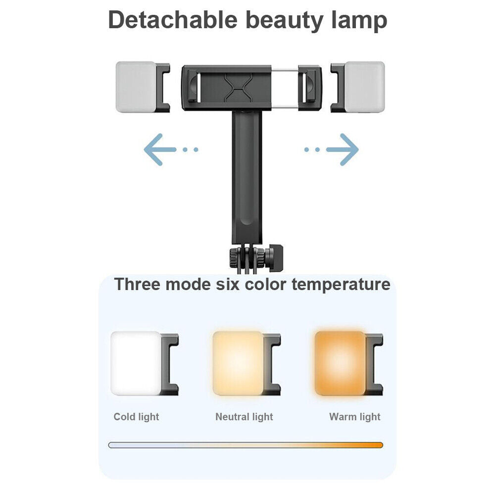 2 detachable and dimmable fill lights have cold white, white and warm white light. When the surrounding light is not good enough, tripod for cell phone will bring you a good skin tone.