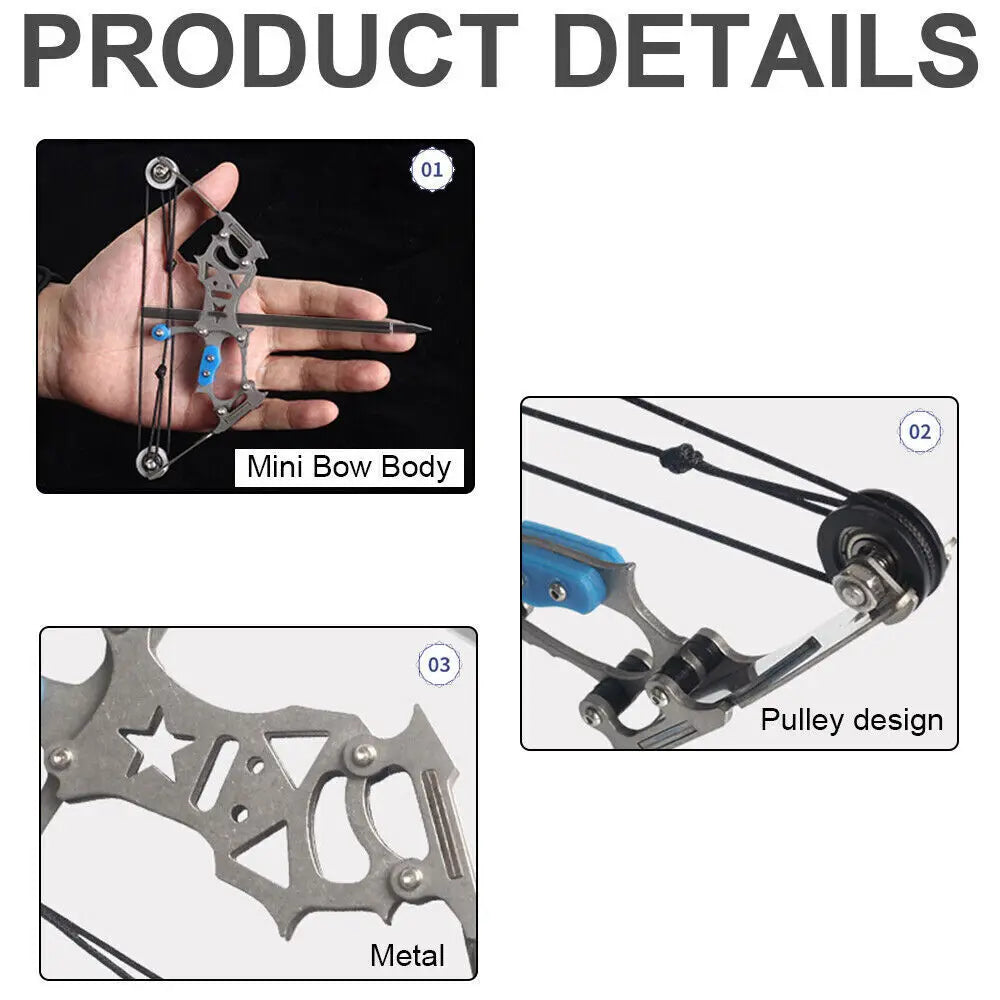 7.5in Mini Compound Bow Kit Arrows Target Shooting Archery Toy Bow w/ 12 Arrow Pocket Bow