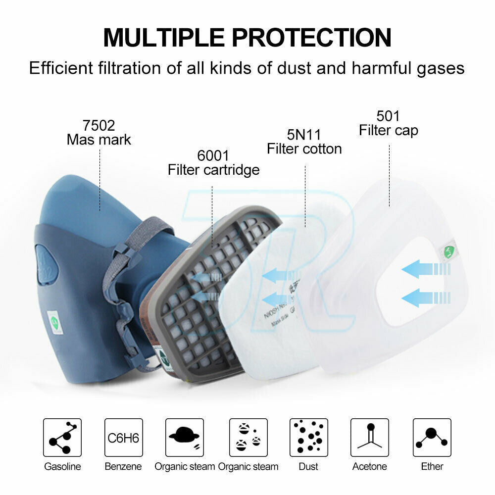 US 7 in 1Suit 7502 Silicone Half Face Gas Dust Mask Respirator Painting Spraying