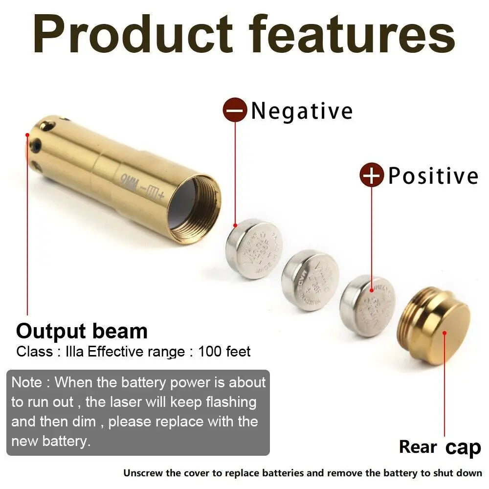 【Application】 The green bore sight laser is suitable for 9mm chamber, caliber specific. Sturdy and durable brass construction, light and compact, and easy to sit perfectly in the bore.