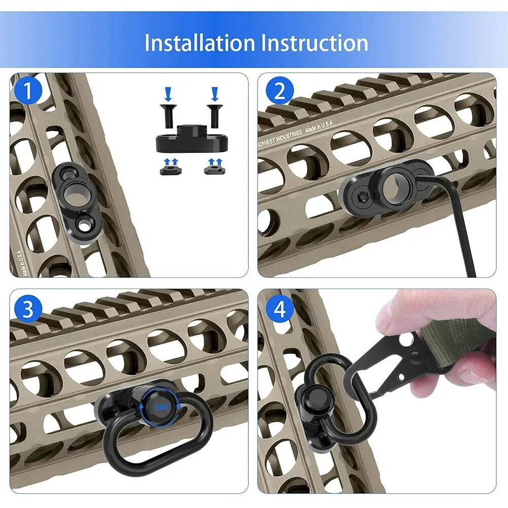 [Quick Release & Easy to Install ] The sling swivels with QD button that allow you to remove the sling rapidly, quick detach and attach to QD sling mount. Compatible with mlok handguard rail slots. Allen wrench is provided for easy installation.