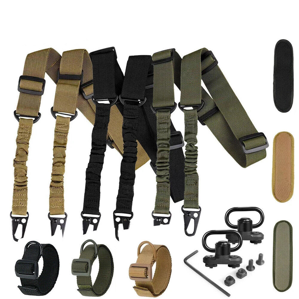 Adjustable and Durable Tactical 2 Point Rifle Strap with QD Sling Swivel Adapter and D Ring