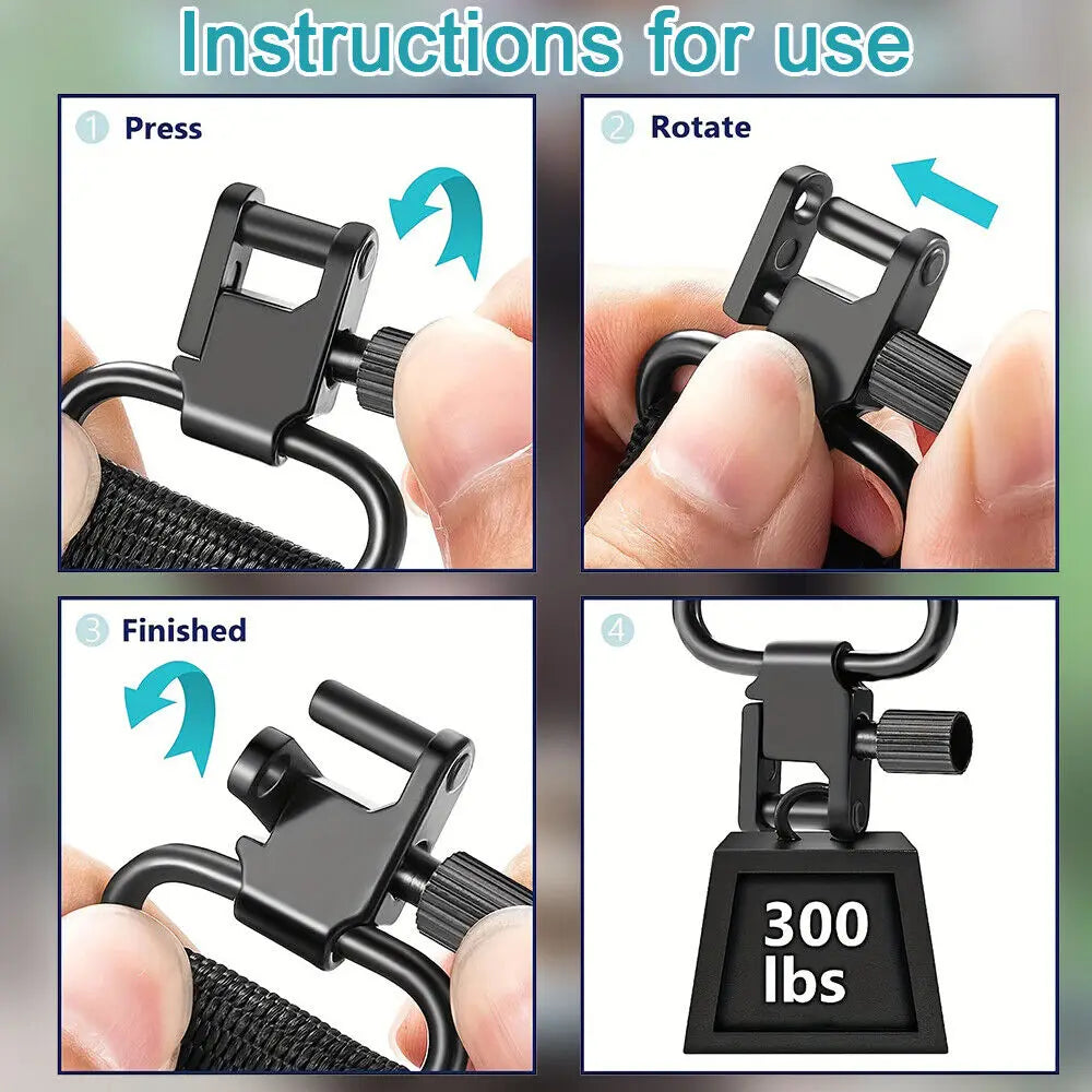 【Sturdy Sling Swivels】Heavy-duty rifle sling swivel fits slings up to 1.25" wide. Tri-lock design provides secure locking for safety. Swivels tested to 300 pounds.