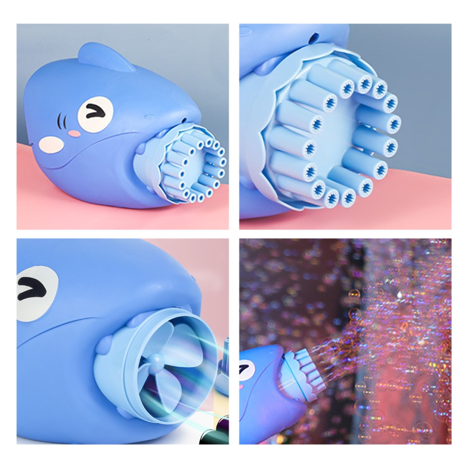 15 holes automatically blow a large number of bubbles per minute. Ergonomic non-slip design, easy to grip. Can be used as a small fan in the hot summer